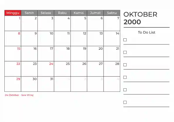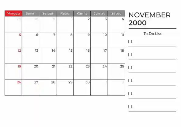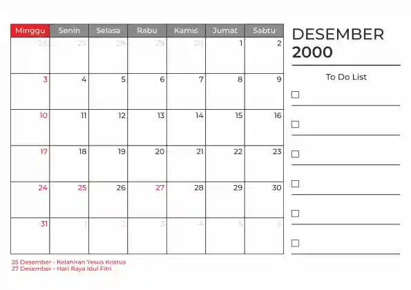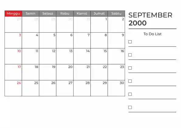 Template kalender 2000 duduk planner. Ada space kosong yang bisa di isi untuk menulis catatan dan ada space untuk menulis to do list.