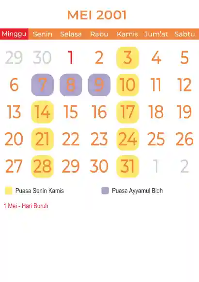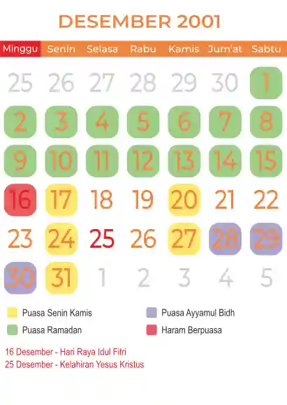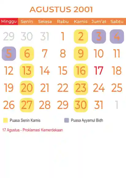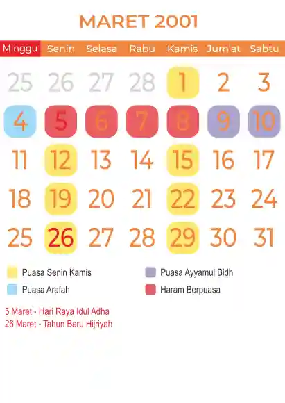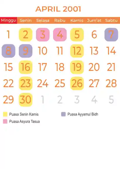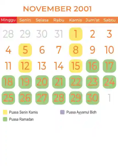 Template kalender puasa 2001, Versi yang lebih simple, cocok sekali buat anda yang ingin cetak kalender yang bermanfat buat umat.