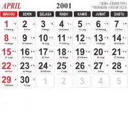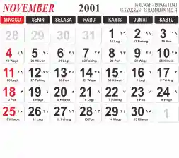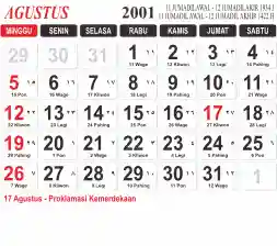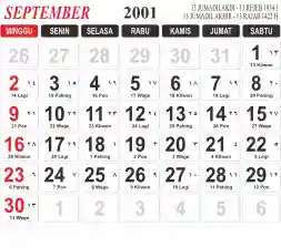 Tema kalender 2001 yang cocok buat desain kalender yang lebih lebar, cocok buat kalender kantor atau desain yang lebih minimalis.