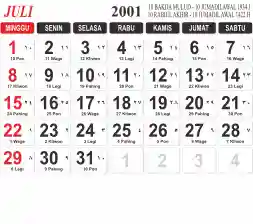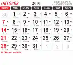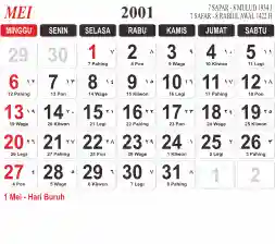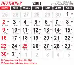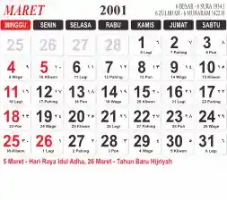 List hari libur tahun 2001 pada Tema 3 (Wide)