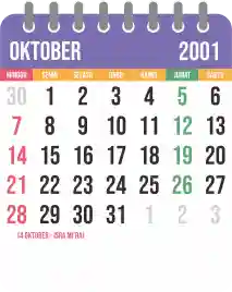 Template kalender 2001 yang bertemakan lucu dan moderen. Bentuknya simple tanpa tanggal hijriah dan tanggal jawa. Cocok buat kebutuhan kalender yang sifatnya universal.
