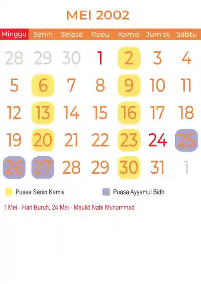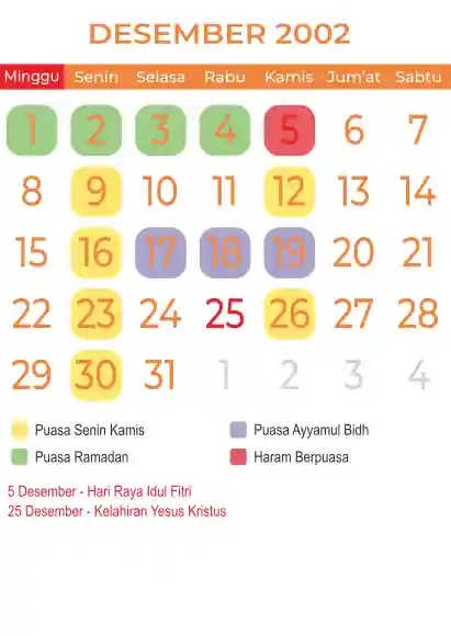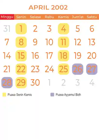Template kalender puasa 2002, Versi yang lebih simple, cocok sekali buat anda yang ingin cetak kalender yang bermanfat buat umat.