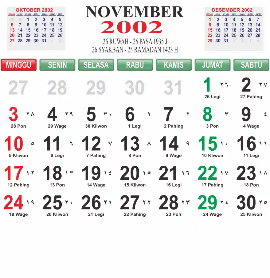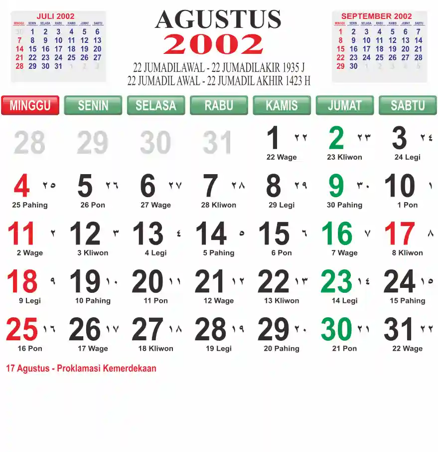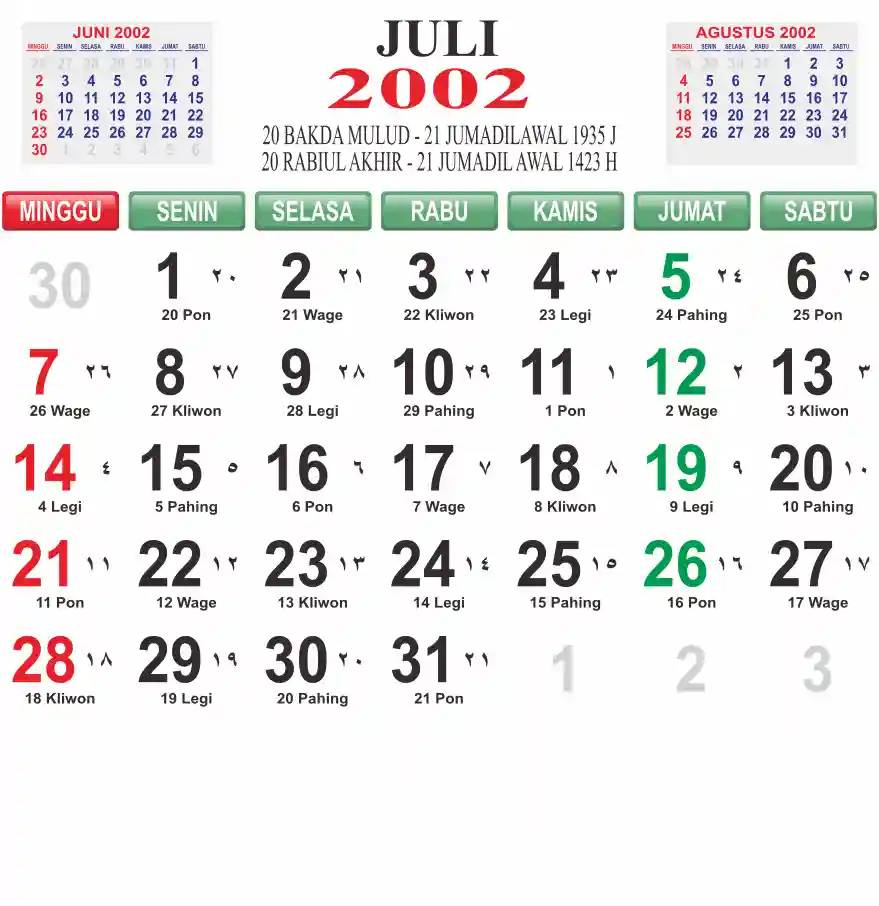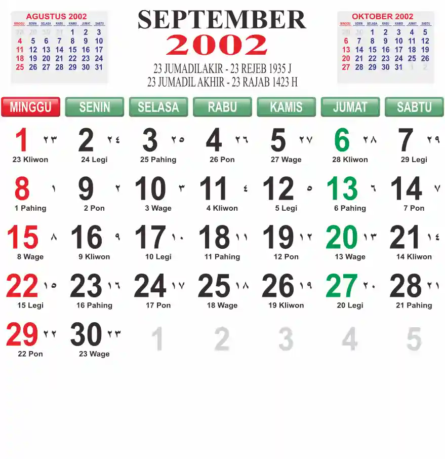 Template kalender 2002 lembaran besar jumbo yang mudah di baca dari jarak jauh. Kalender ini biasanya di cetak 1 lembar per bulan.
