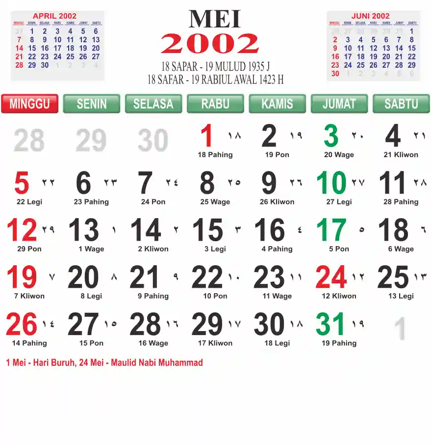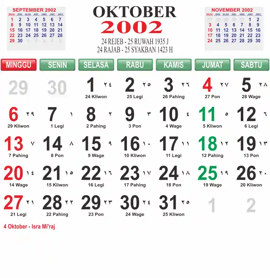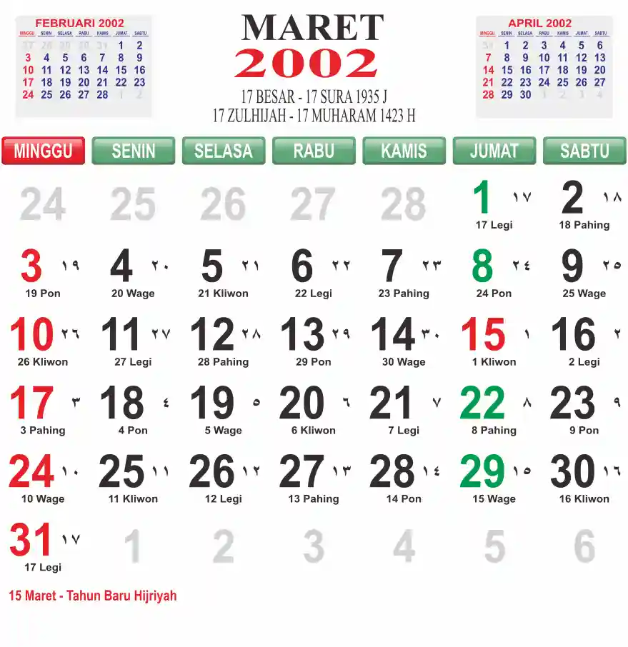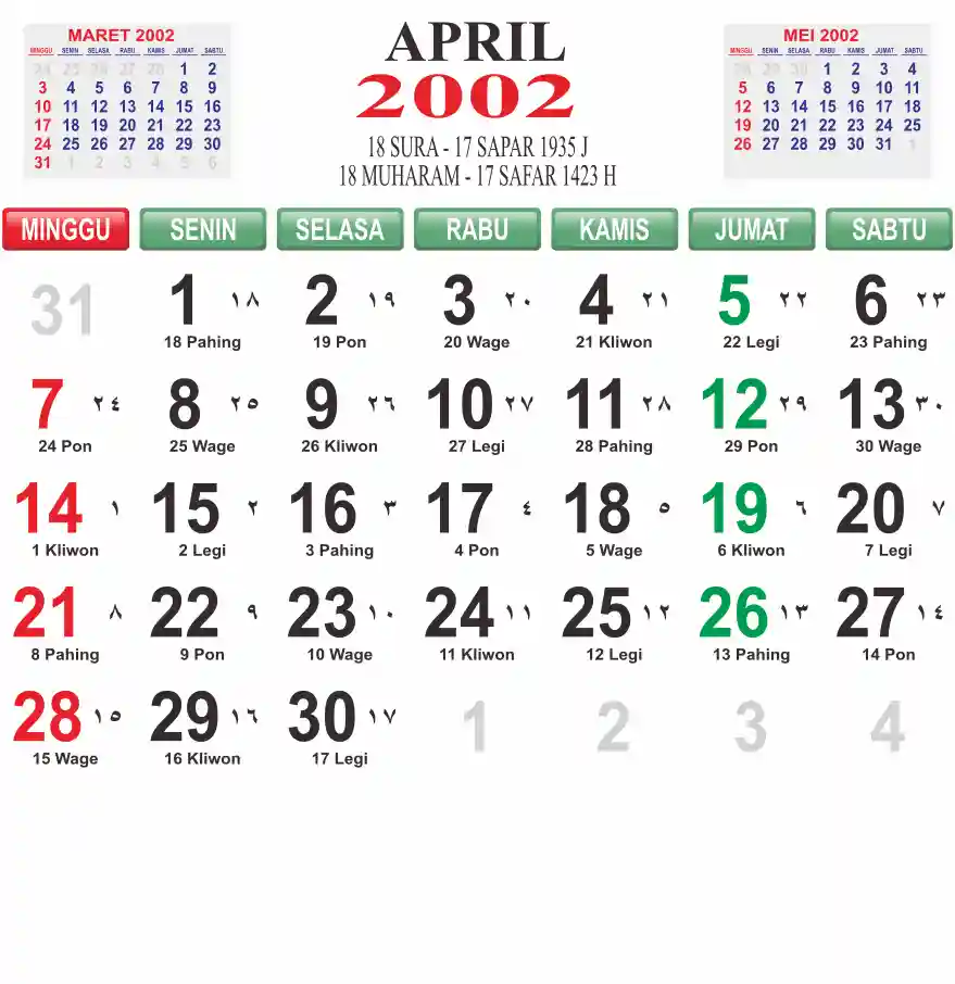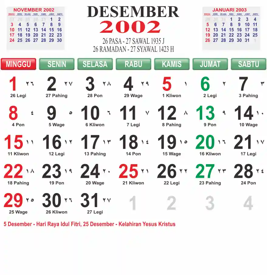 Template kalender 2002 lembaran besar jumbo yang mudah di baca dari jarak jauh. Kalender ini biasanya di cetak 1 lembar per bulan.