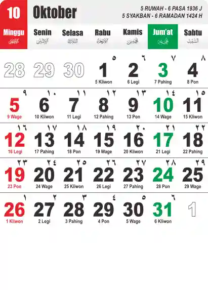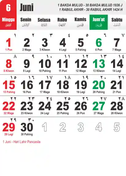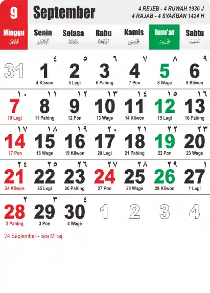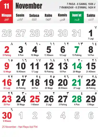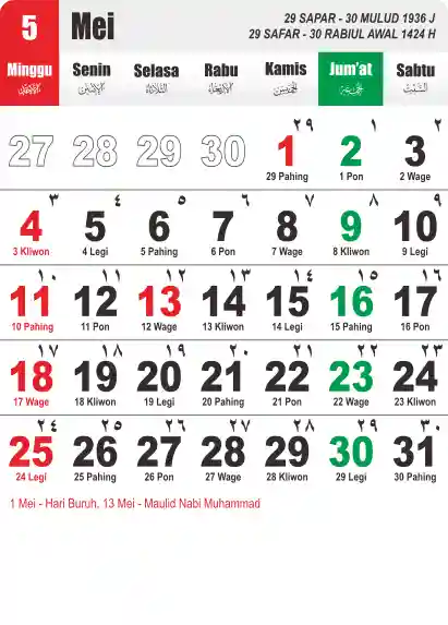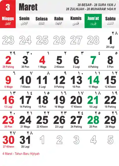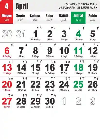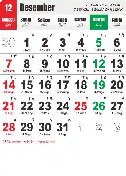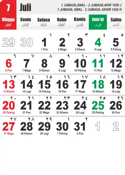 Template Kalender Jawa + Hijriah Vector