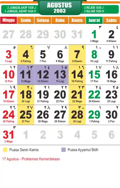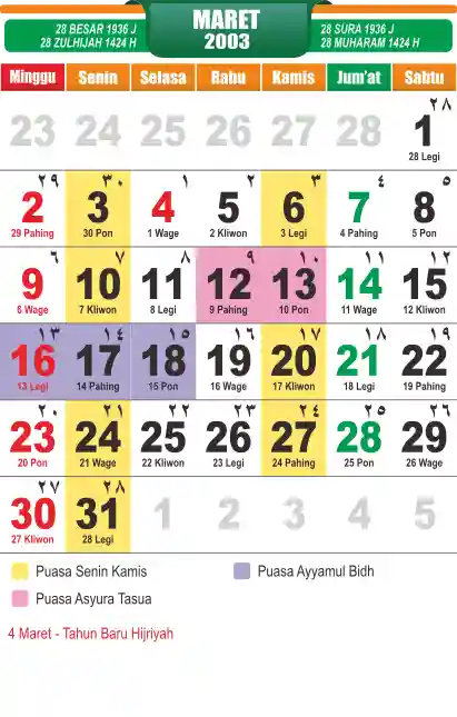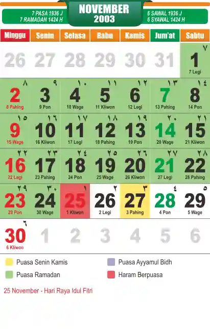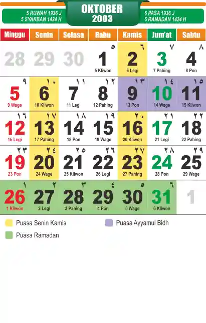 Template kalender puasa 2003, cocok sekali buat anda yang ingin cetak kalender yang bermanfat buat umat.
