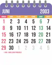 Template kalender 2003 yang bertemakan lucu dan moderen. Bentuknya simple tanpa tanggal hijriah dan tanggal jawa. Cocok buat kebutuhan kalender yang sifatnya universal.