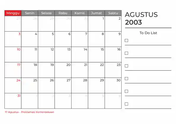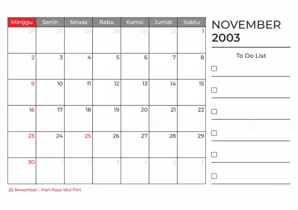 Template kalender 2003 duduk planner. Ada space kosong yang bisa di isi untuk menulis catatan dan ada space untuk menulis to do list.