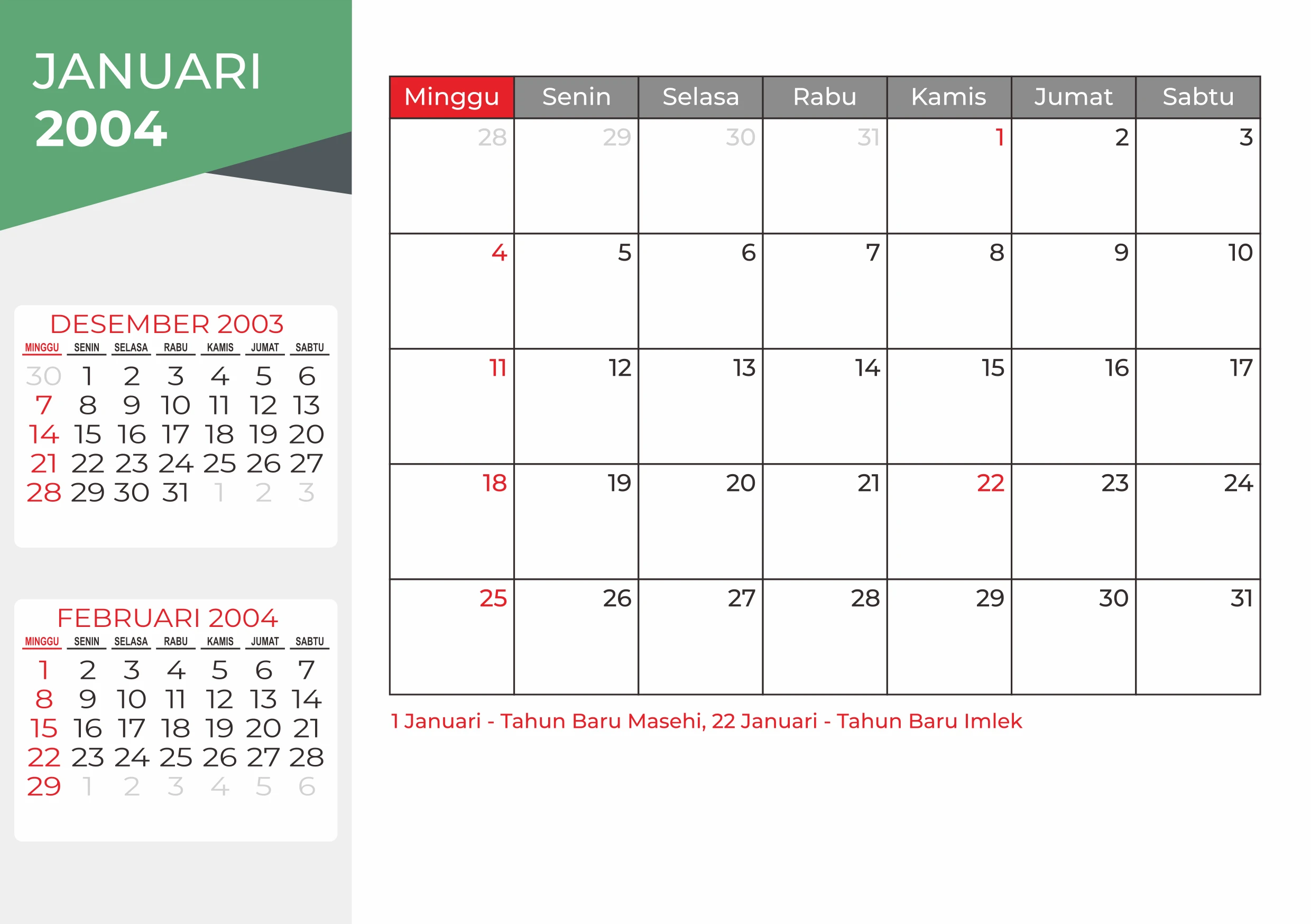 Dapatkan akses vector template kalender 2004 dengan berbagai tema, file editable, warna CMYK / RGB untuk CorelDRAW.