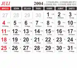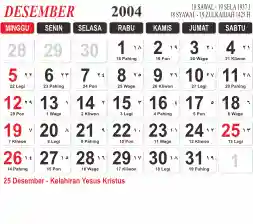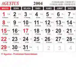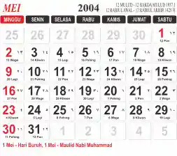 List hari libur tahun 2004 pada Tema 3 (Wide)