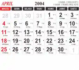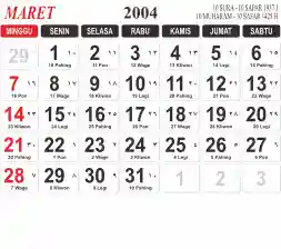 Tema kalender 2004 yang cocok buat desain kalender yang lebih lebar, cocok buat kalender kantor atau desain yang lebih minimalis.