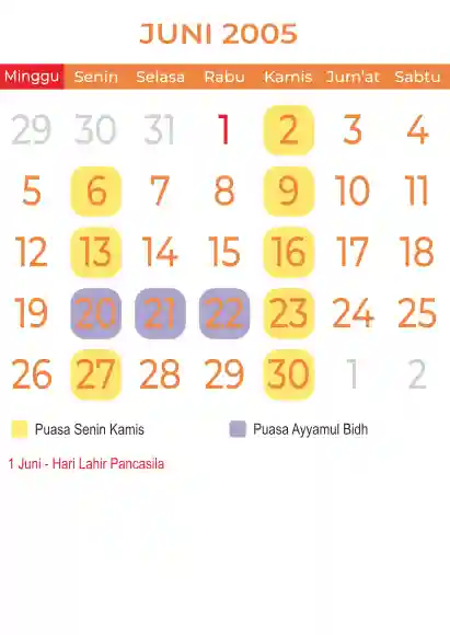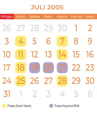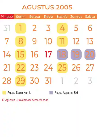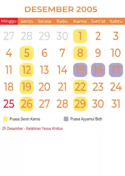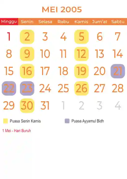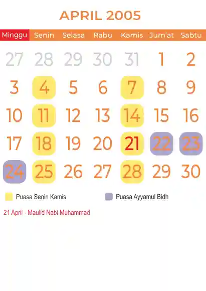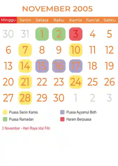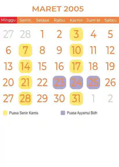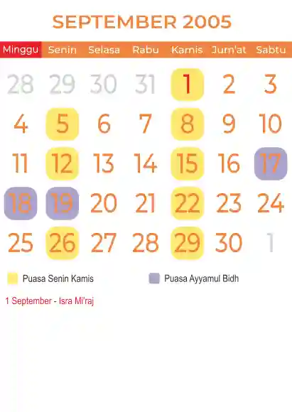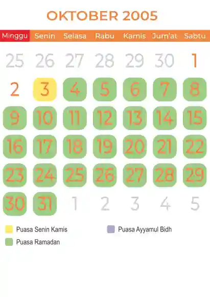 Template kalender puasa 2005, Versi yang lebih simple, cocok sekali buat anda yang ingin cetak kalender yang bermanfat buat umat.
