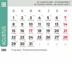 Template kalender 2005 dengan konsep minimalis modern dengan warna yang soft, cocok sekali buat kantor / bisnis seperti bank.
