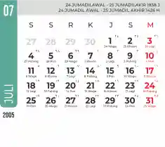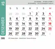 List hari libur tahun 2005 pada Tema 7