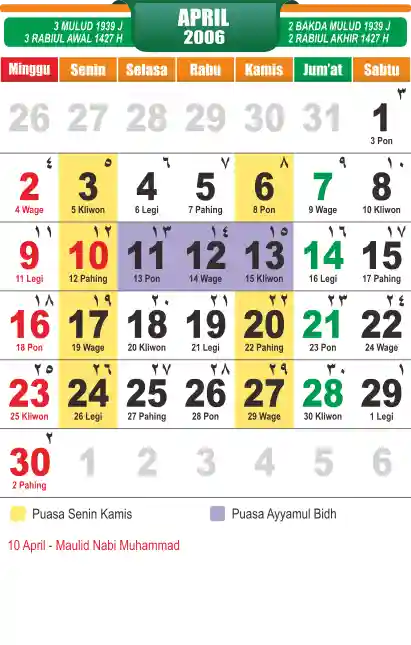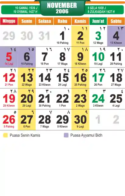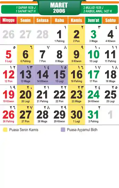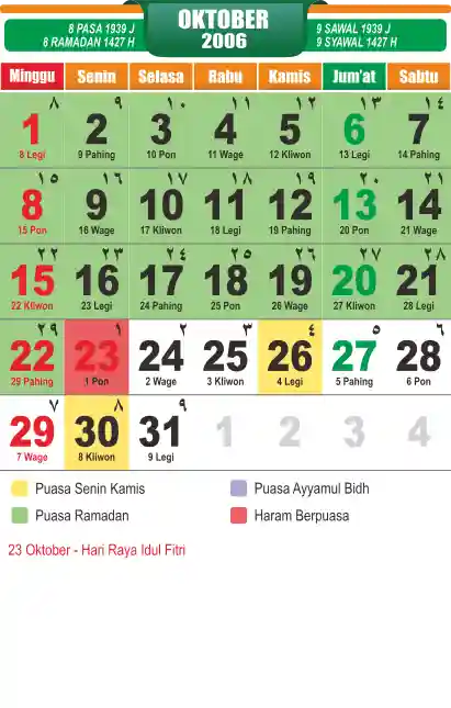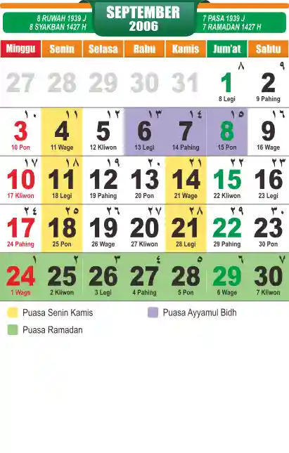 Template kalender puasa 2006, cocok sekali buat anda yang ingin cetak kalender yang bermanfat buat umat.