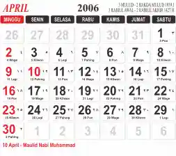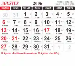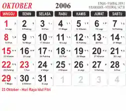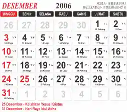 List hari libur tahun 2006 pada Tema 3 (Wide)