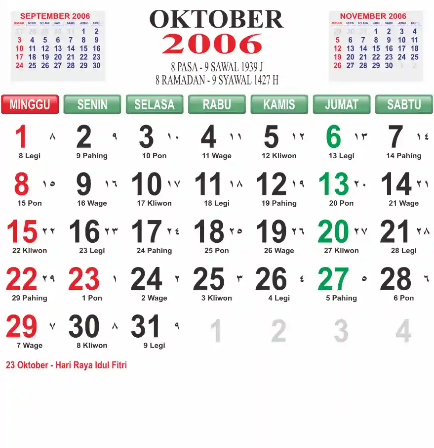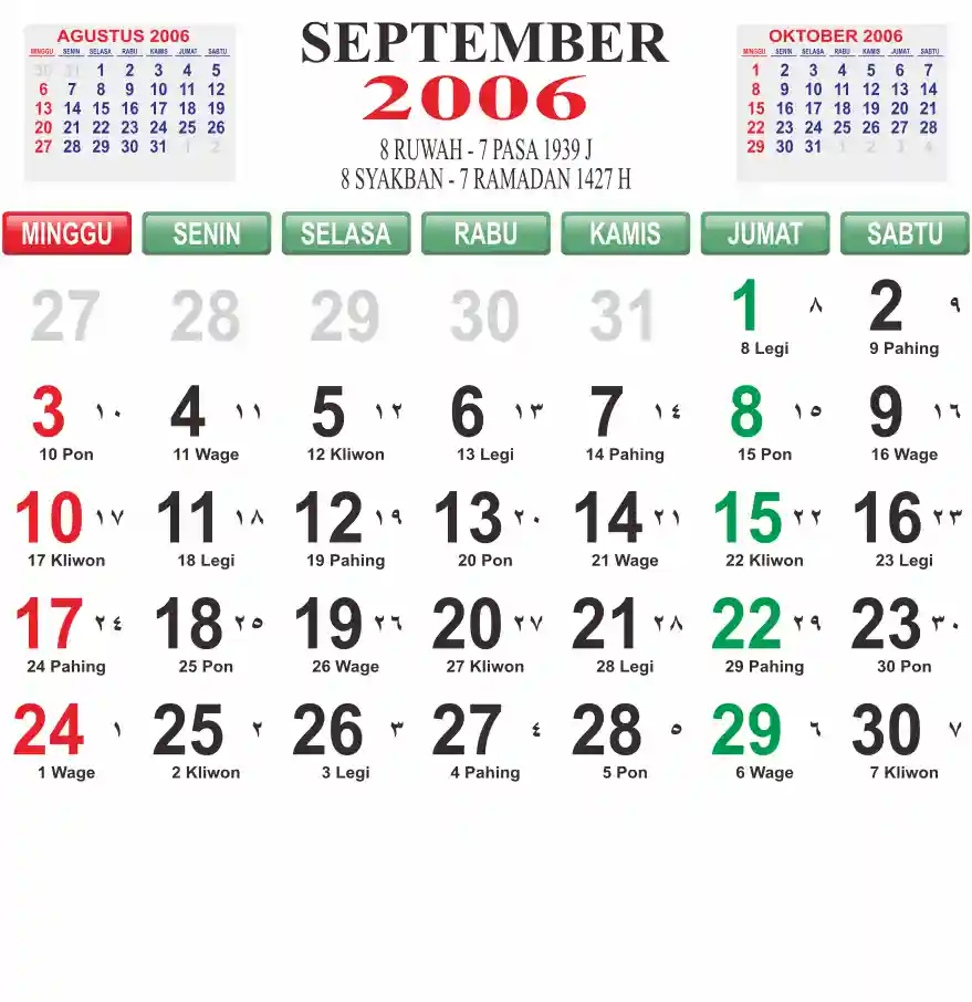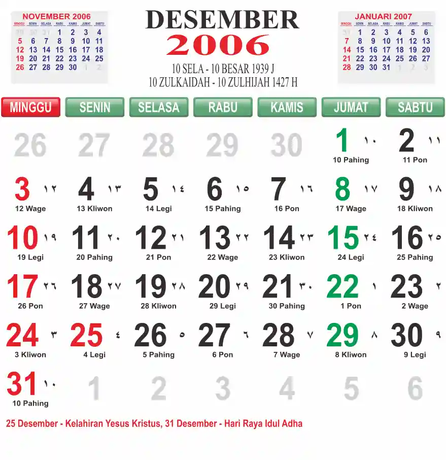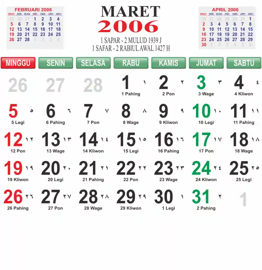 Template kalender 2006 lembaran besar jumbo yang mudah di baca dari jarak jauh. Kalender ini biasanya di cetak 1 lembar per bulan.