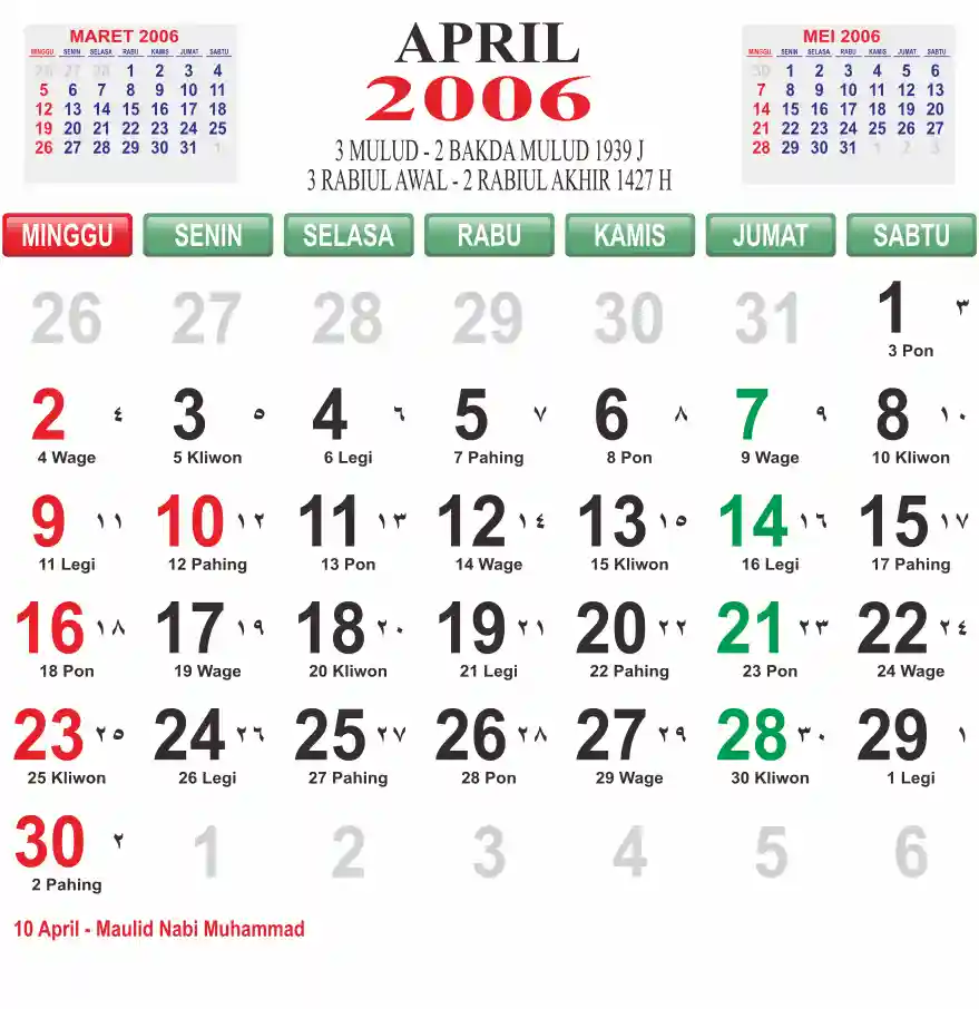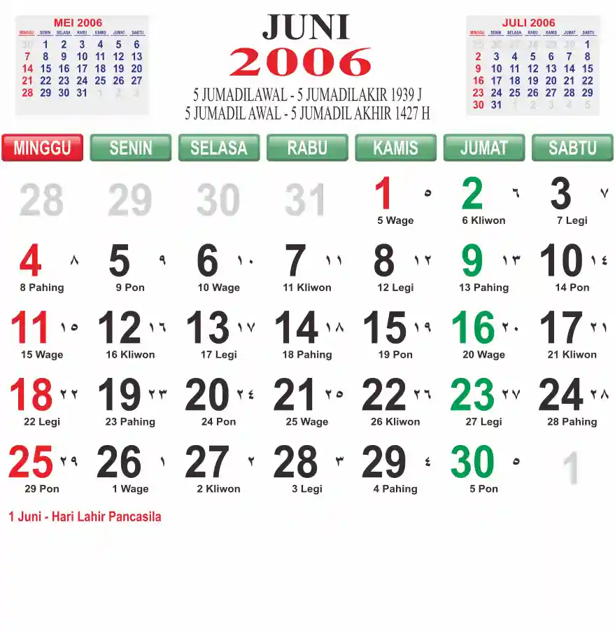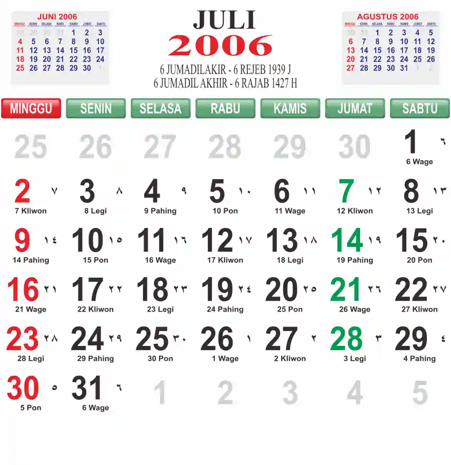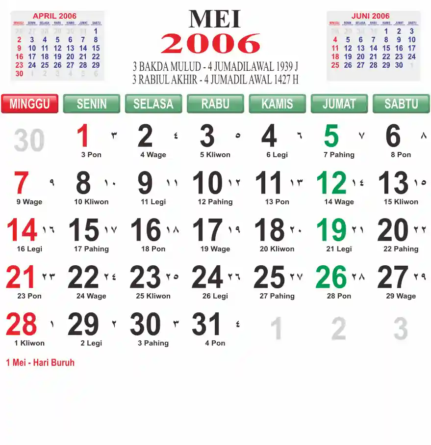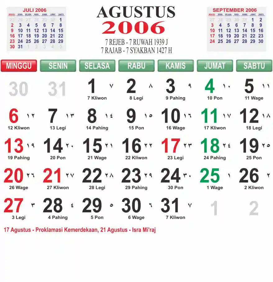 Template kalender 2006 lembaran besar jumbo yang mudah di baca dari jarak jauh. Kalender ini biasanya di cetak 1 lembar per bulan.