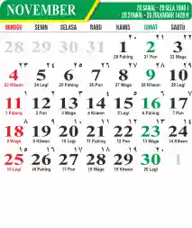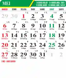 Template Kalender Jawa + Hijriah Vector