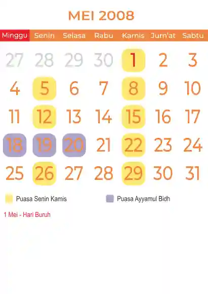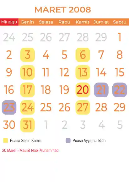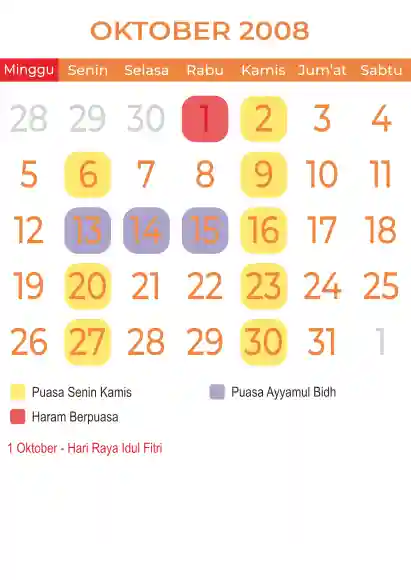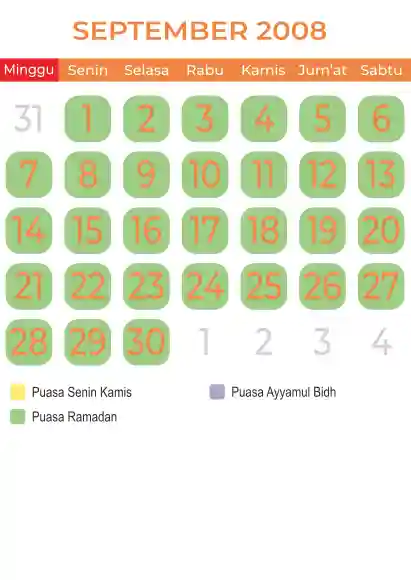 Template kalender puasa 2008, Versi yang lebih simple, cocok sekali buat anda yang ingin cetak kalender yang bermanfat buat umat.