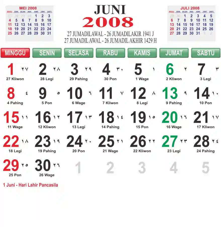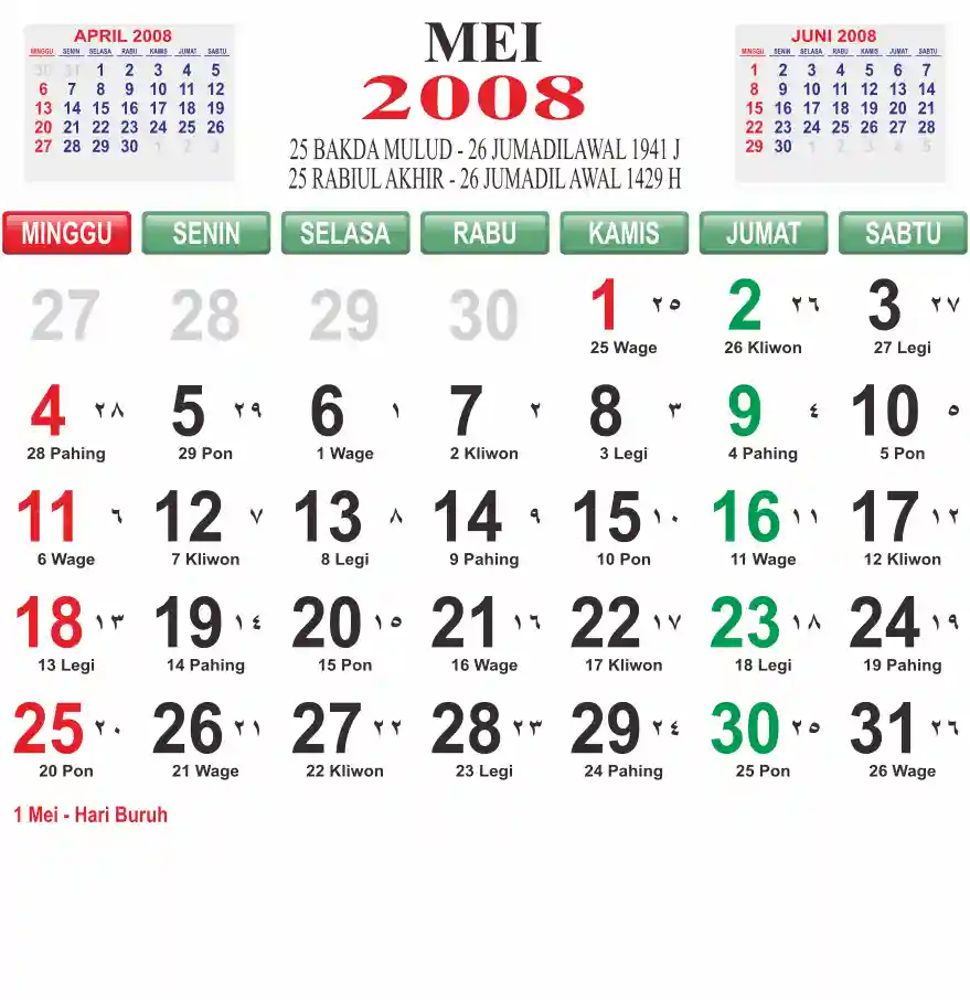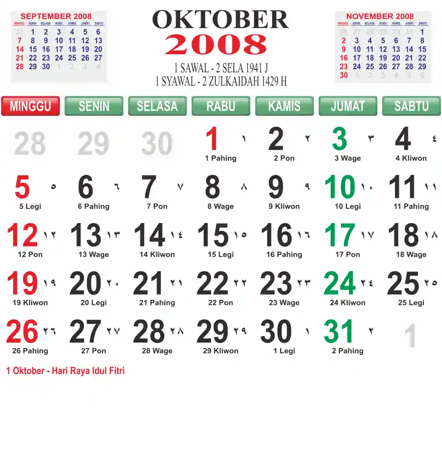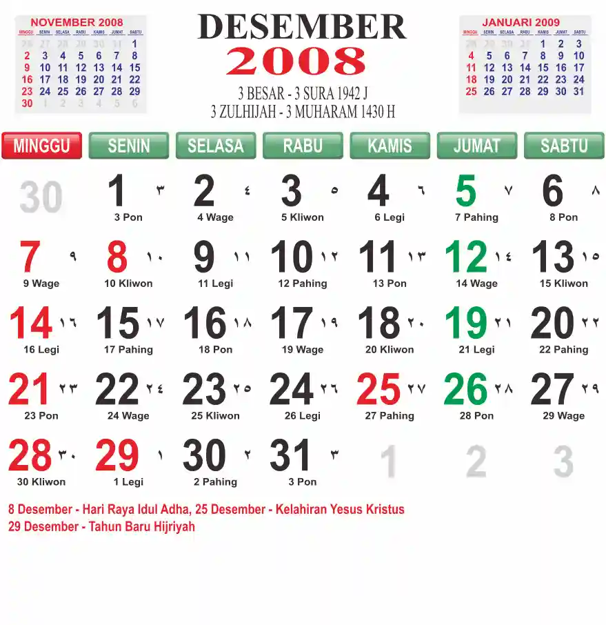 Template kalender 2008 lembaran besar jumbo yang mudah di baca dari jarak jauh. Kalender ini biasanya di cetak 1 lembar per bulan.