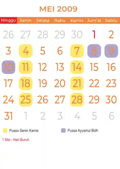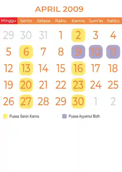 Template kalender puasa 2009, Versi yang lebih simple, cocok sekali buat anda yang ingin cetak kalender yang bermanfat buat umat.