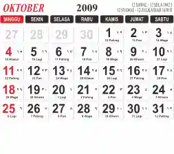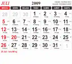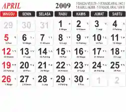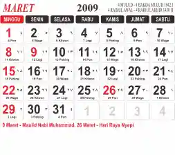List hari libur tahun 2009 pada Tema 3 (Wide)