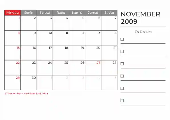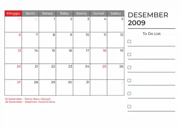 Template kalender 2009 duduk planner. Ada space kosong yang bisa di isi untuk menulis catatan dan ada space untuk menulis to do list.