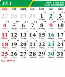 Template Kalender Jawa + Hijriah Vector