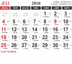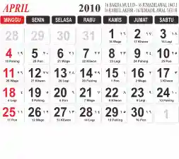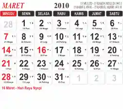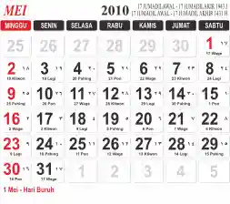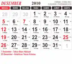 List hari libur tahun 2010 pada Tema 3 (Wide)