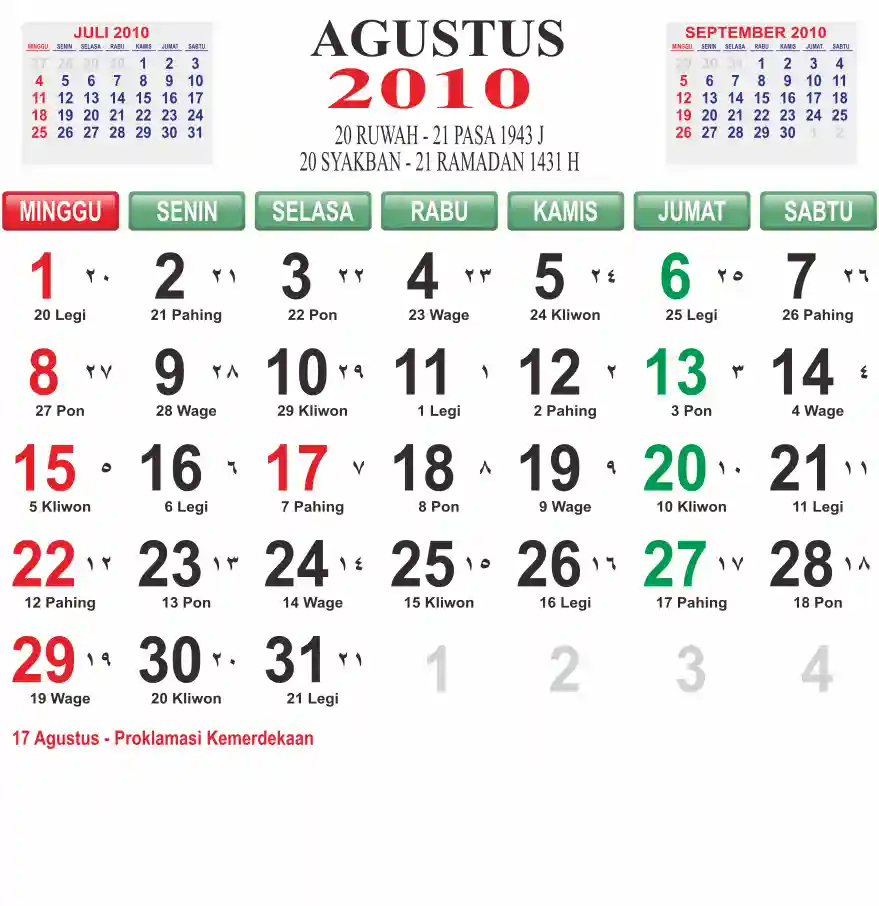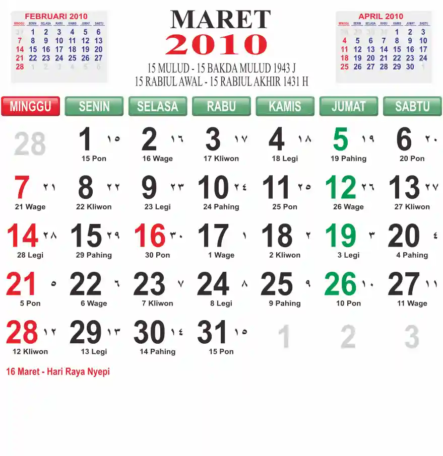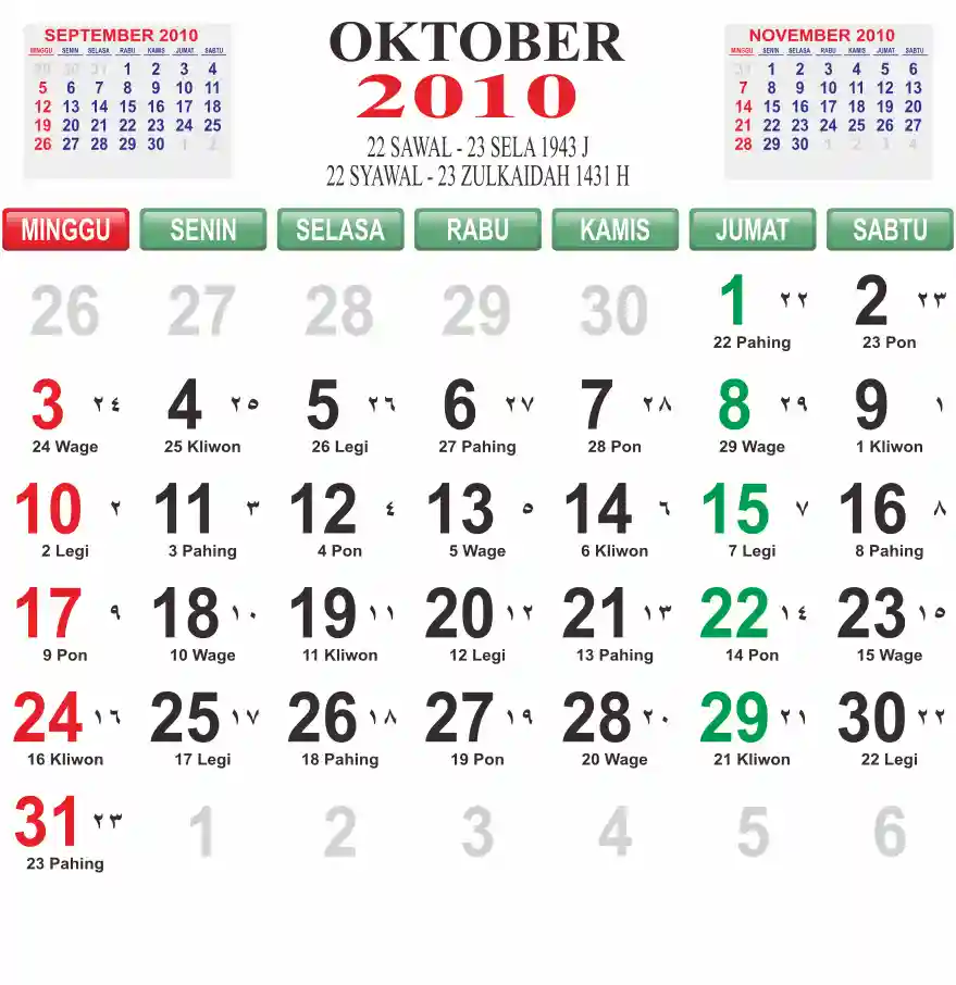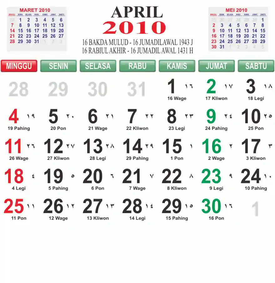 Template kalender 2010 lembaran besar jumbo yang mudah di baca dari jarak jauh. Kalender ini biasanya di cetak 1 lembar per bulan.
