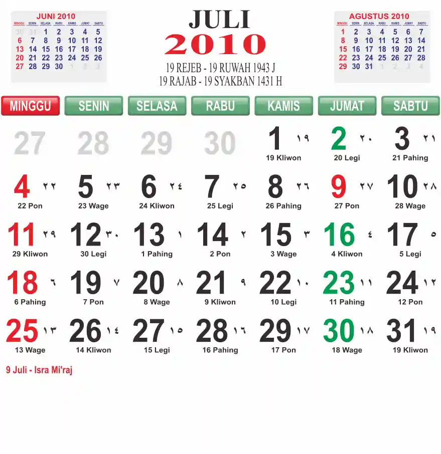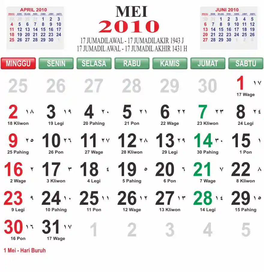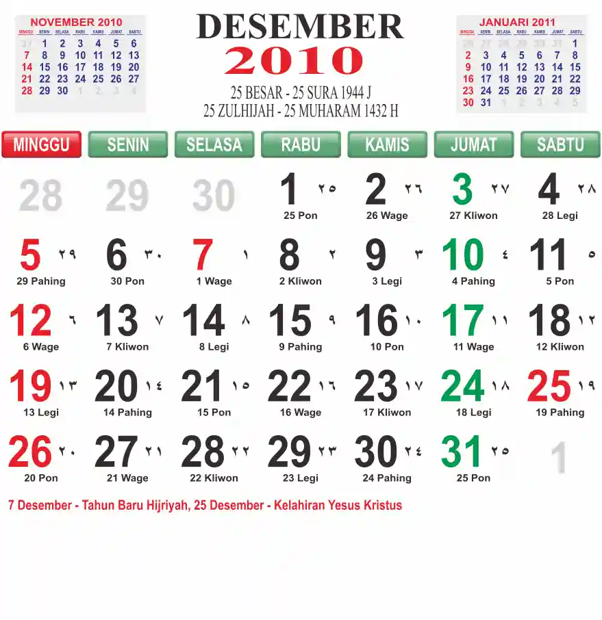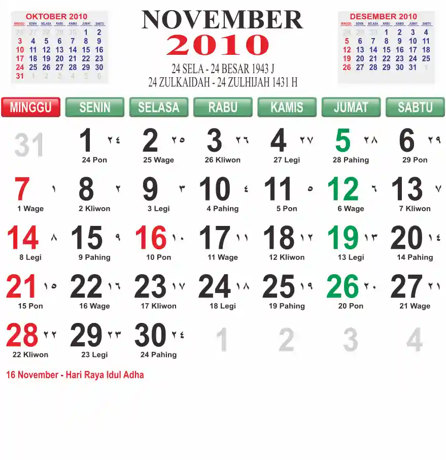 Template kalender 2010 lembaran besar jumbo yang mudah di baca dari jarak jauh. Kalender ini biasanya di cetak 1 lembar per bulan.
