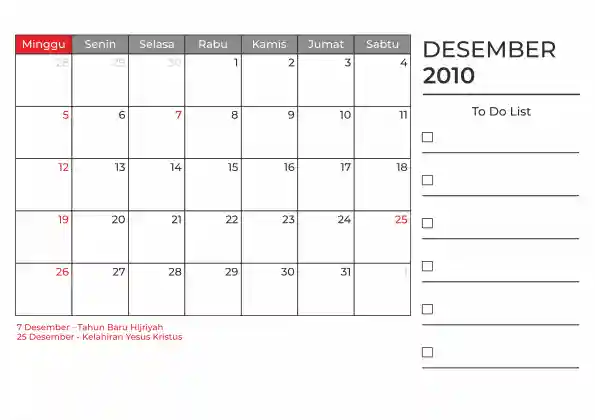 Template kalender 2010 duduk planner. Ada space kosong yang bisa di isi untuk menulis catatan dan ada space untuk menulis to do list.
