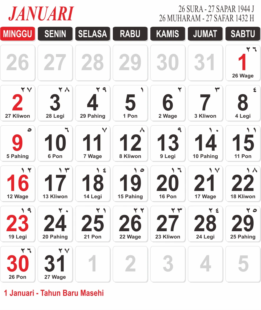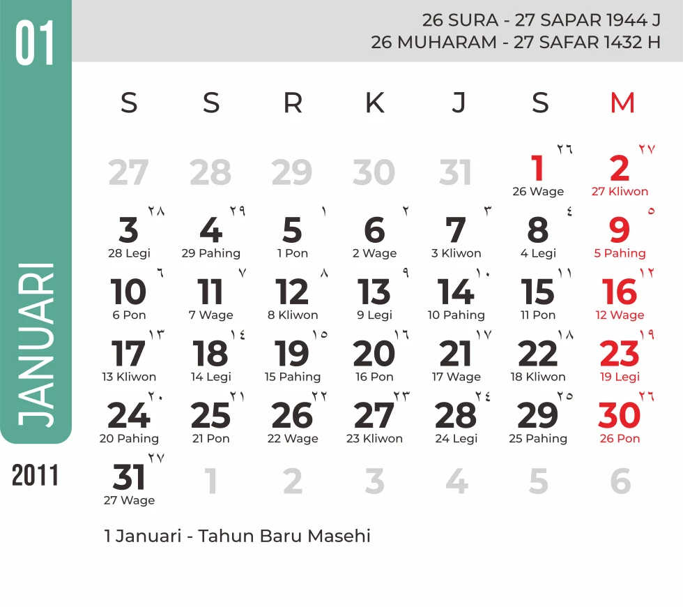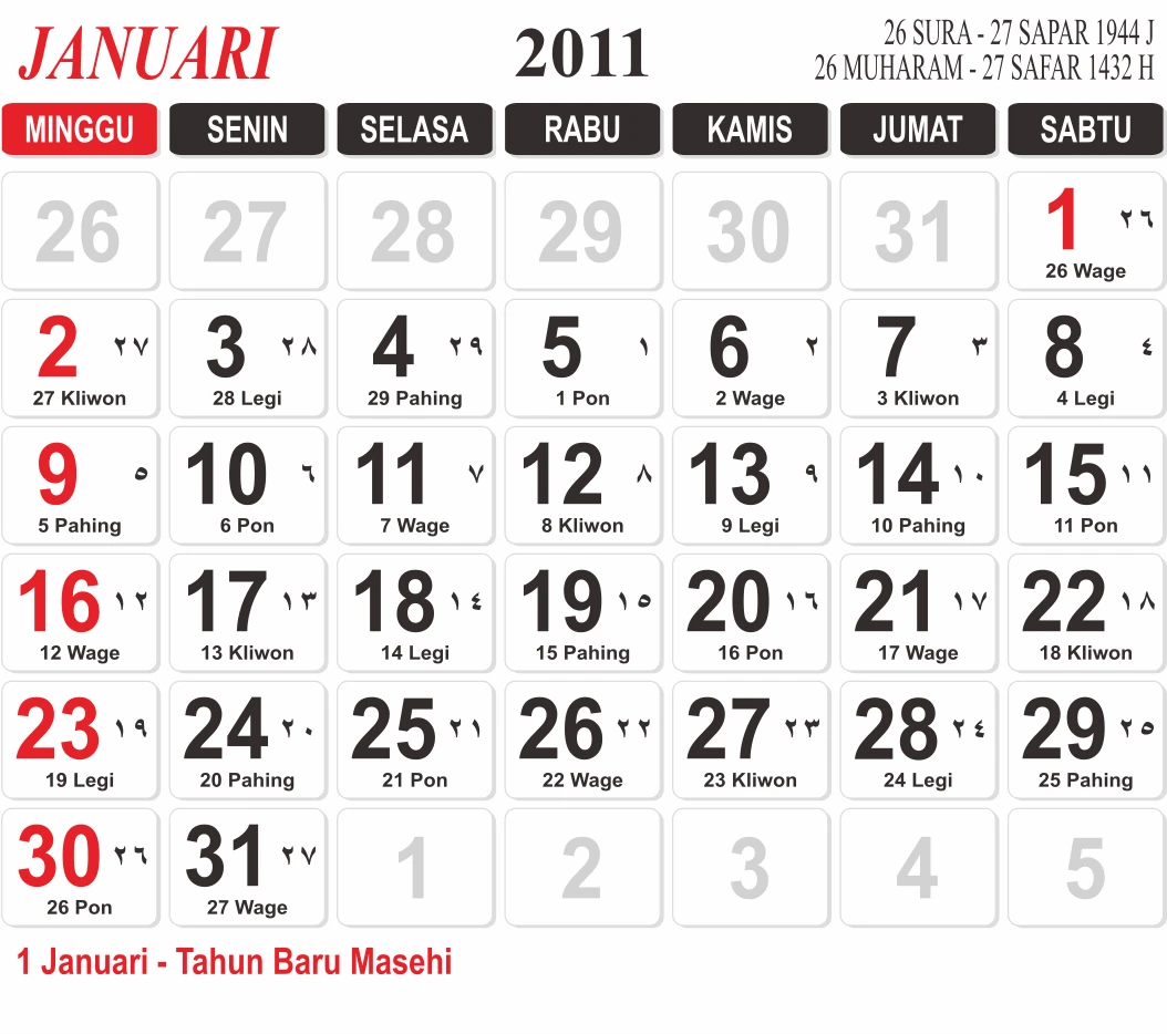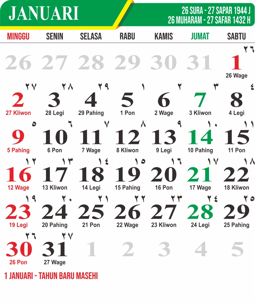 Template Kalender Jawa + Hijriah Vector
