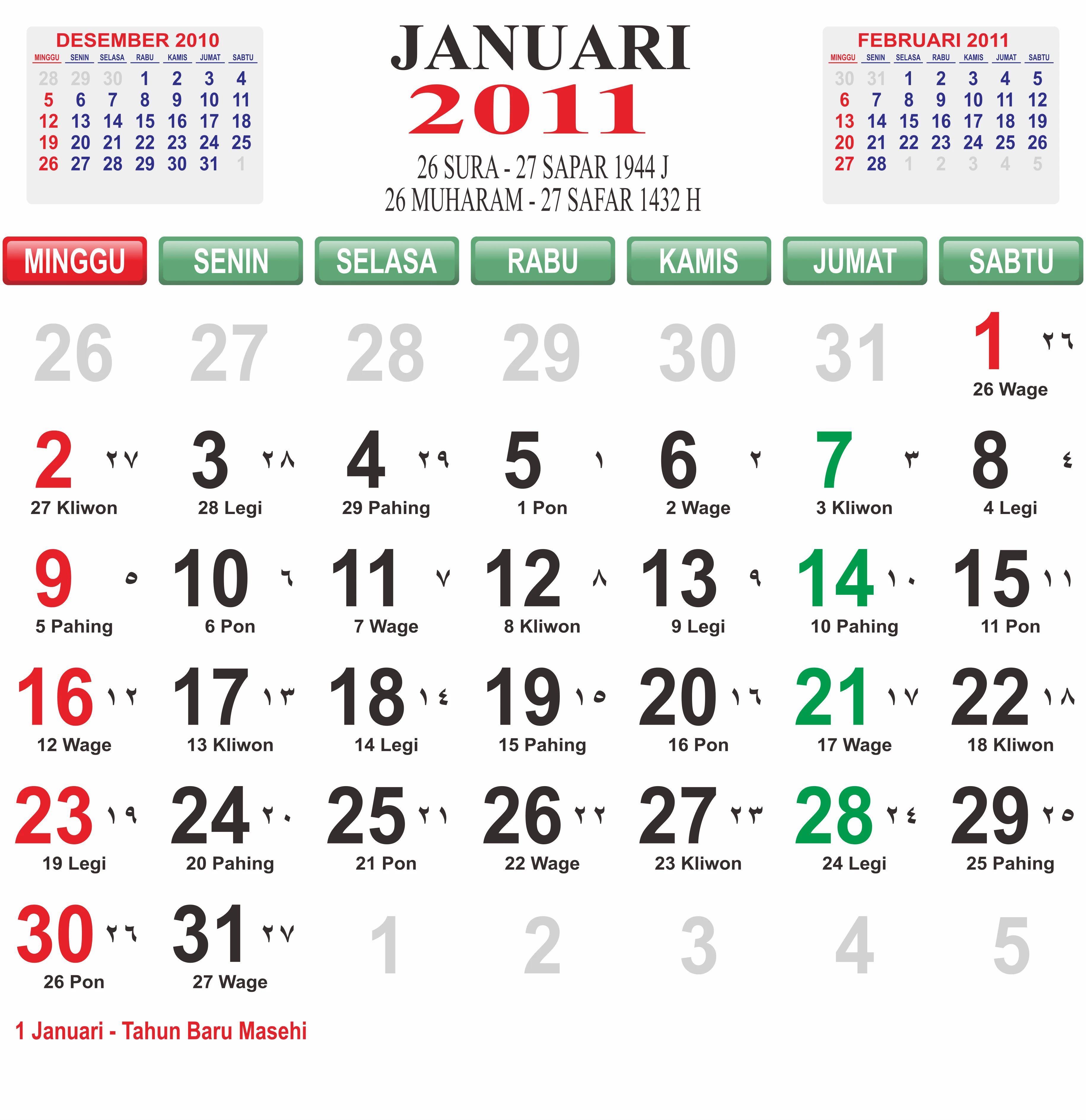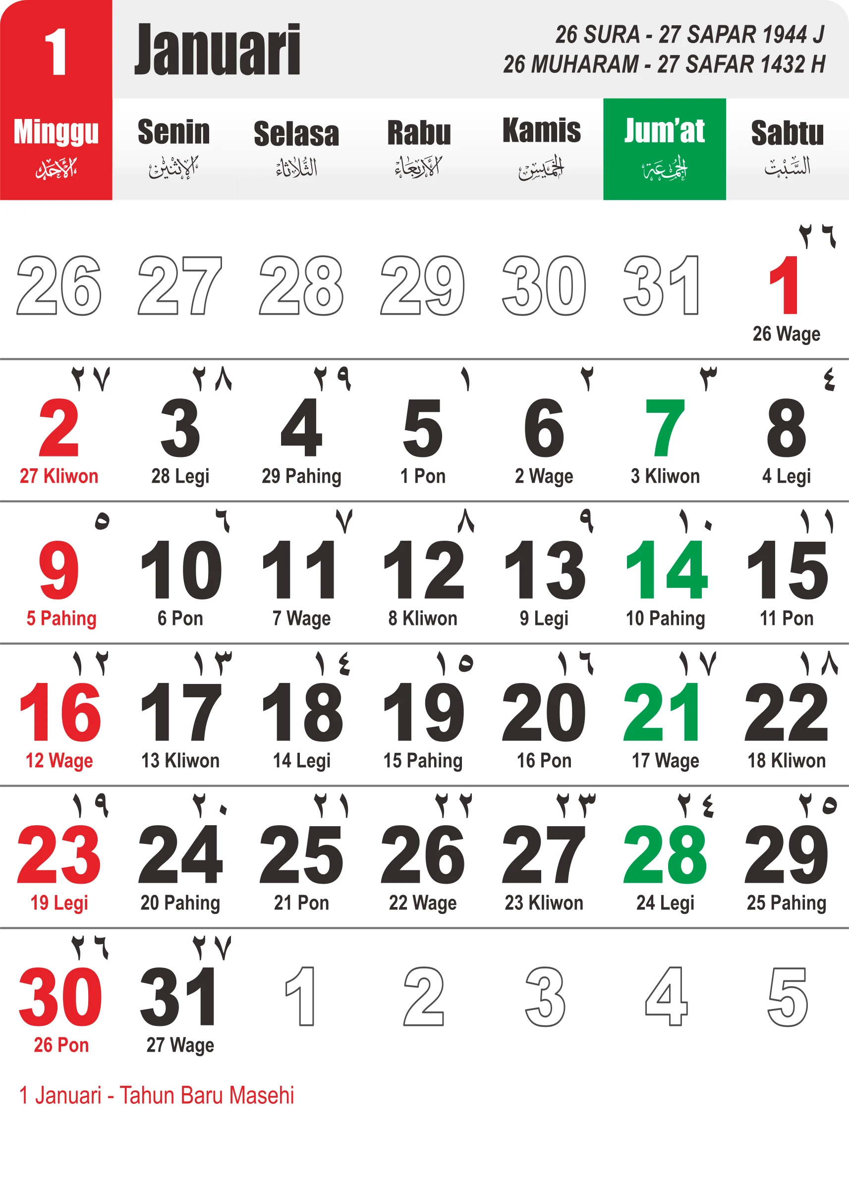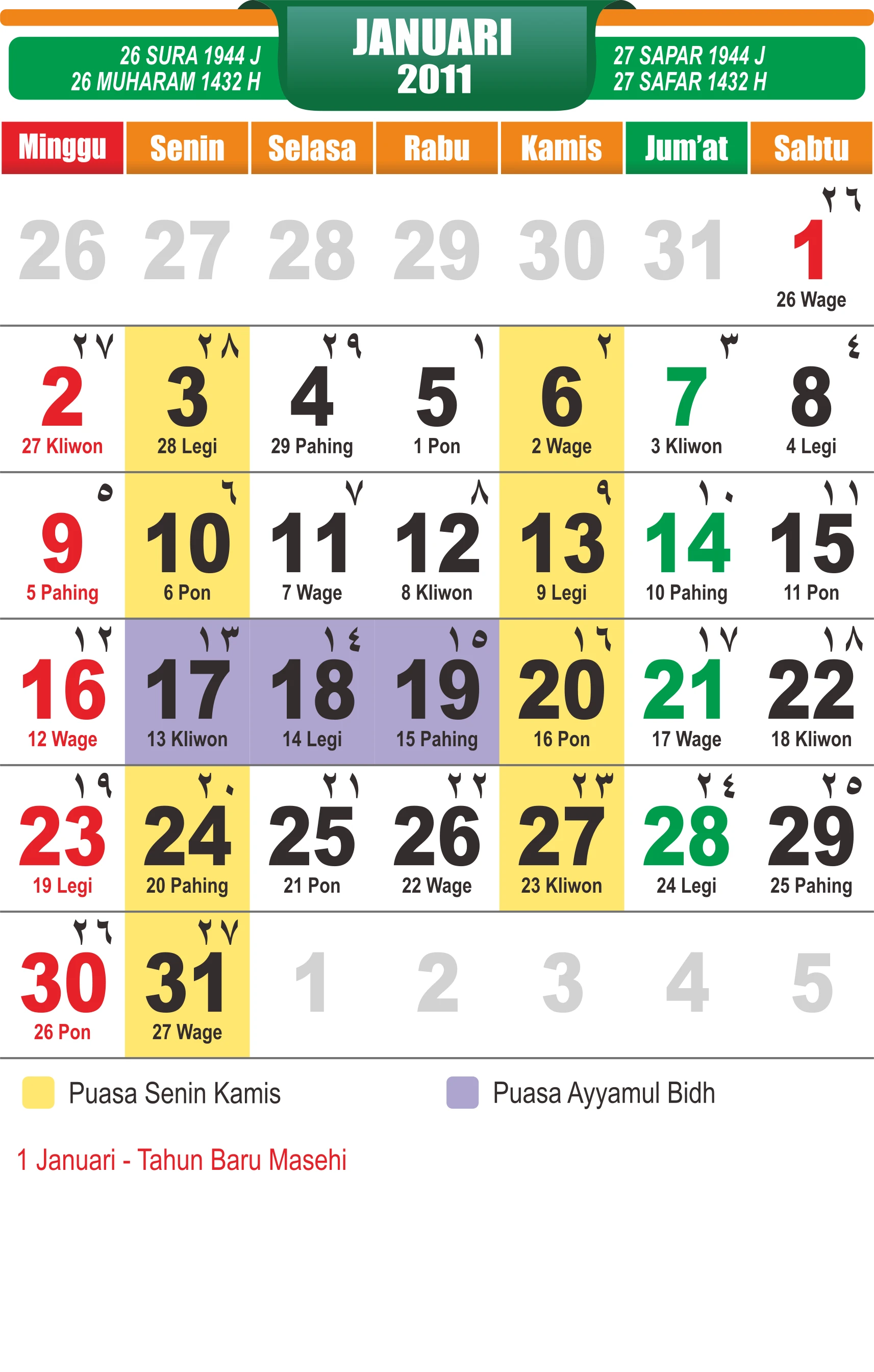 Template Kalender Jawa + Hijriah Vector
