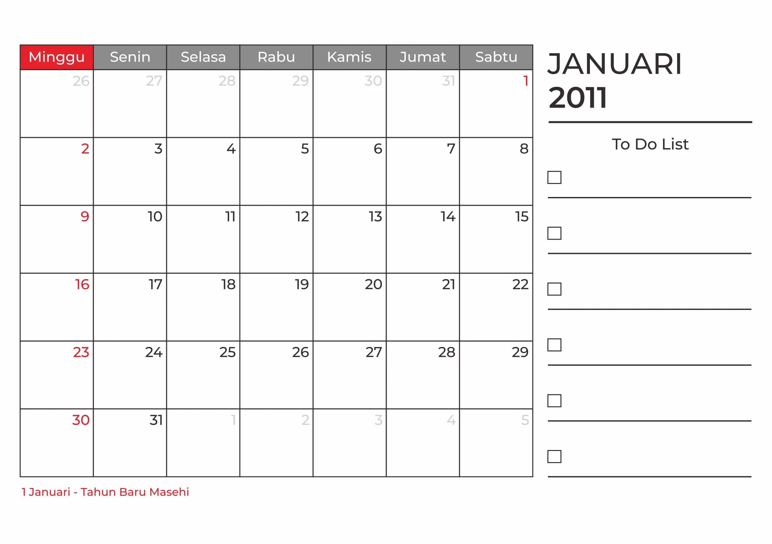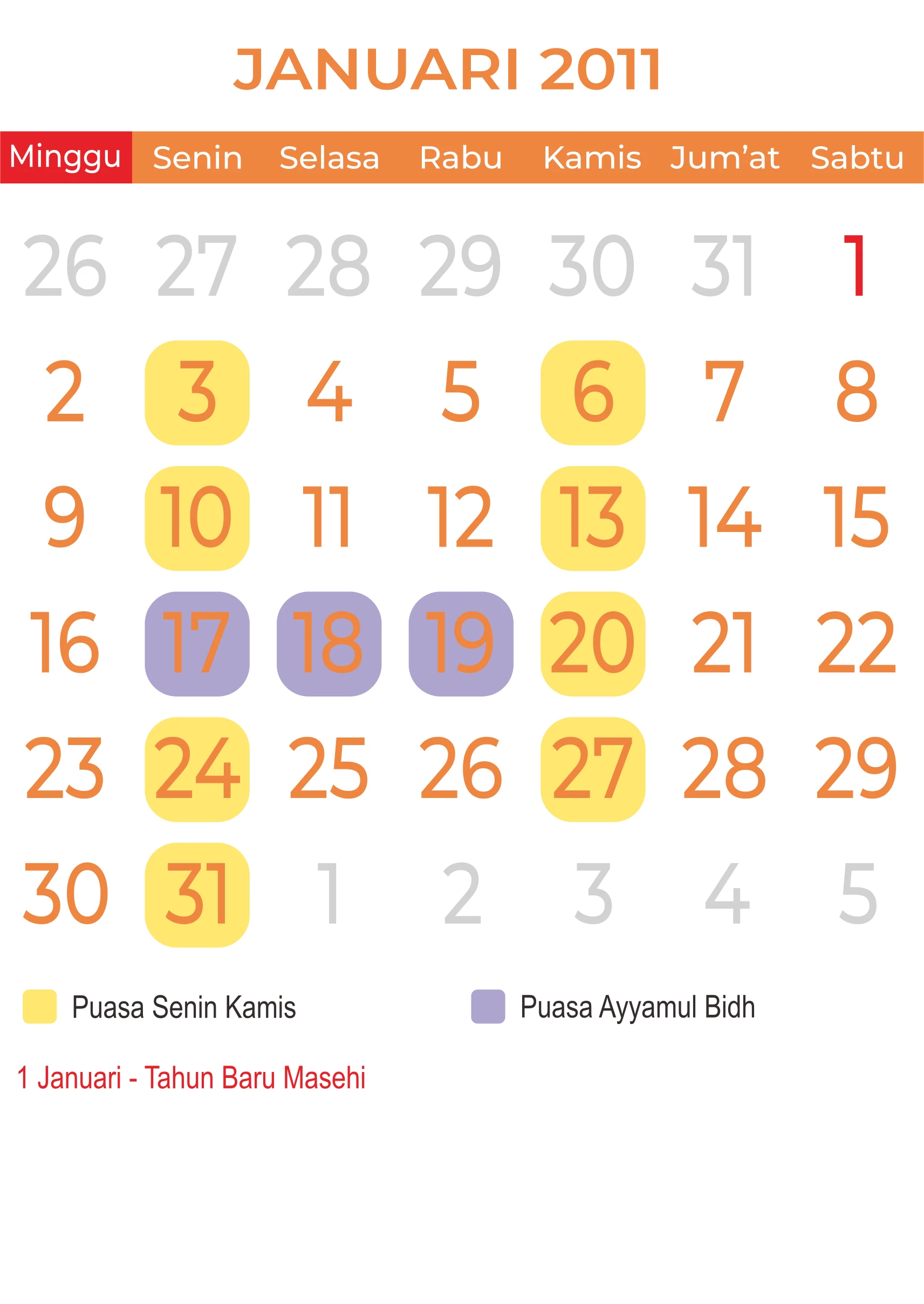 Template Kalender Masehi Vector