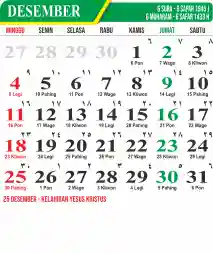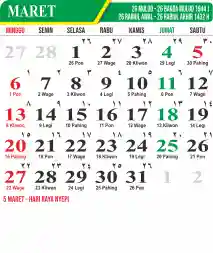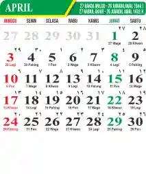 Template Kalender Jawa + Hijriah Vector