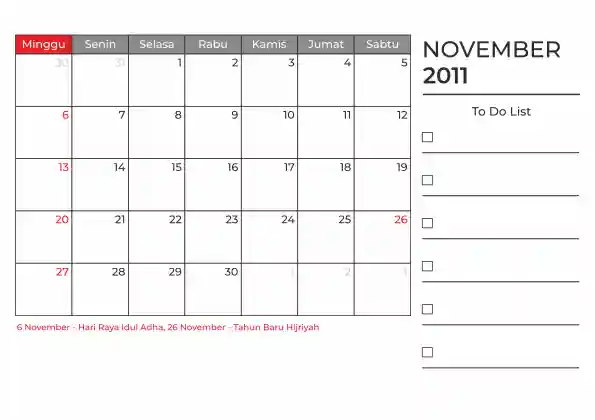 Template kalender 2011 duduk planner. Ada space kosong yang bisa di isi untuk menulis catatan dan ada space untuk menulis to do list.