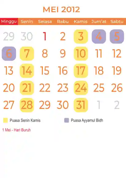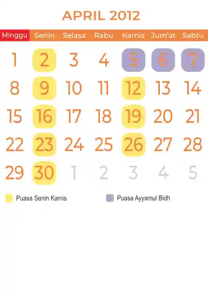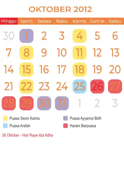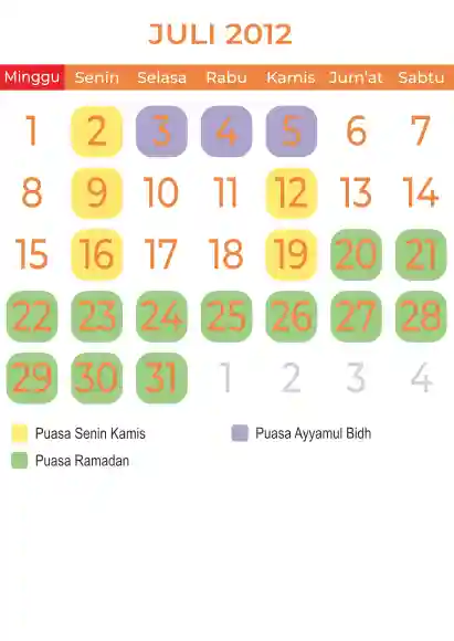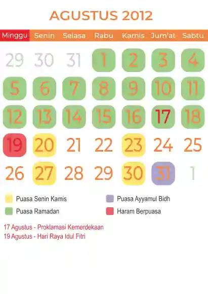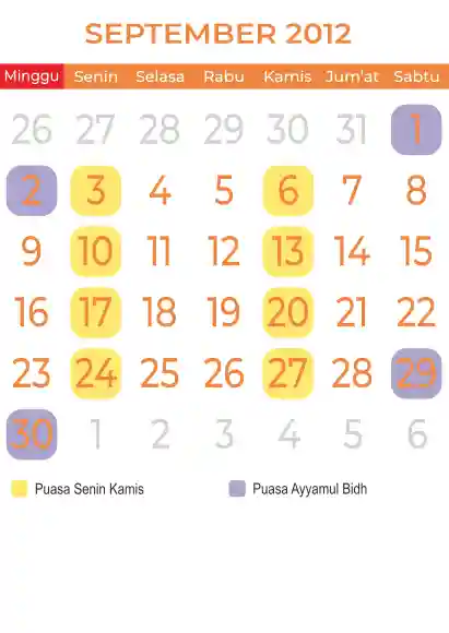 Template kalender puasa 2012, Versi yang lebih simple, cocok sekali buat anda yang ingin cetak kalender yang bermanfat buat umat.