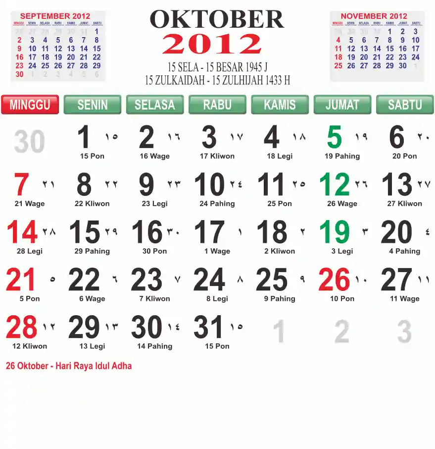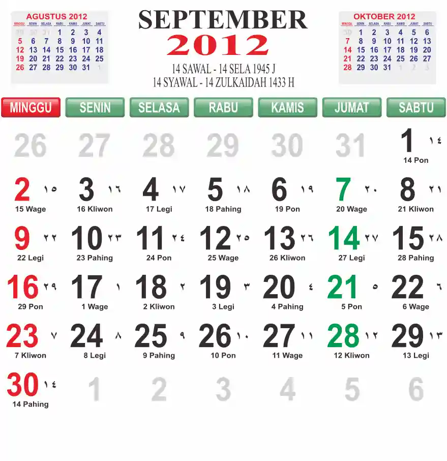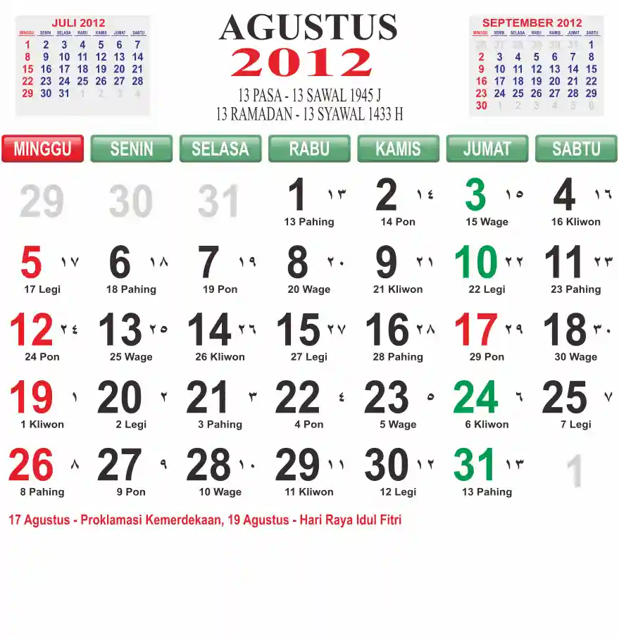 Template kalender 2012 lembaran besar jumbo yang mudah di baca dari jarak jauh. Kalender ini biasanya di cetak 1 lembar per bulan.