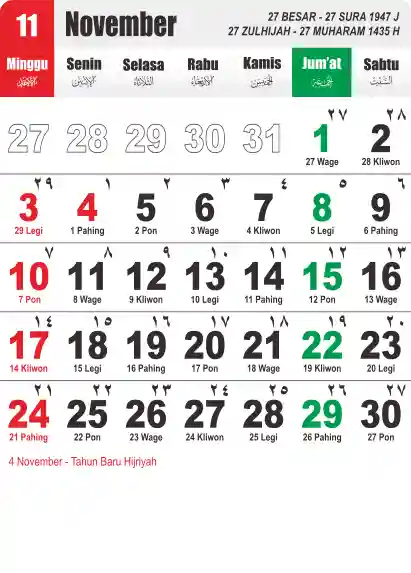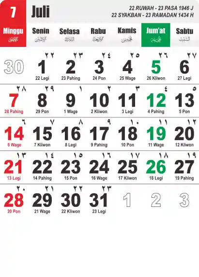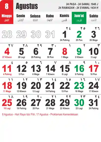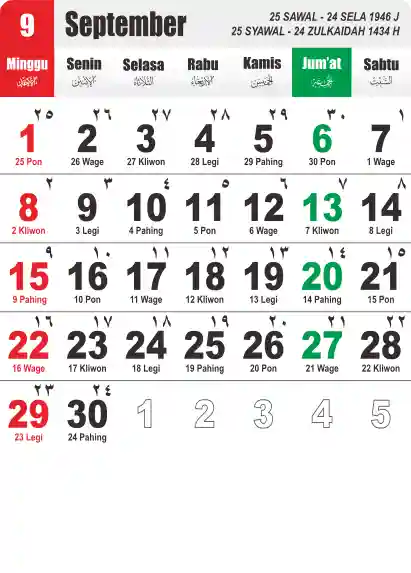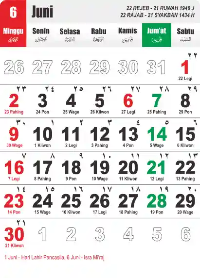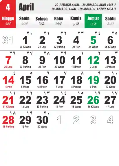 Template Kalender Jawa + Hijriah Vector