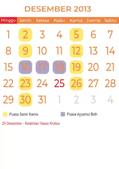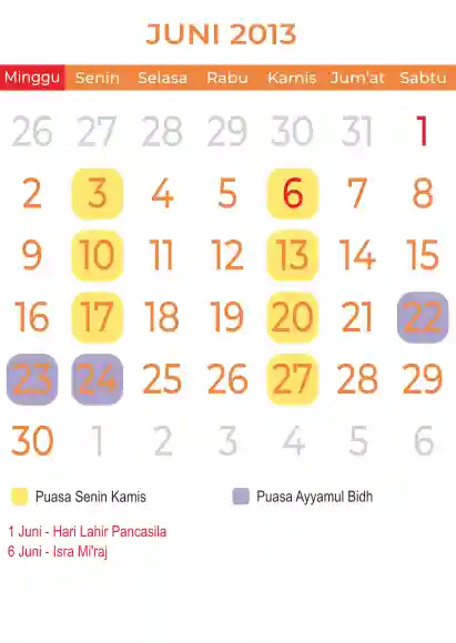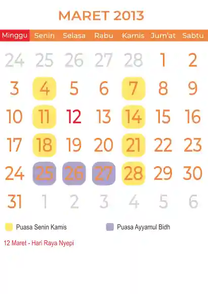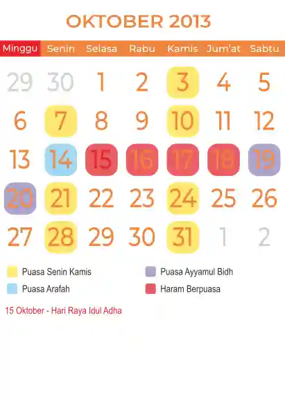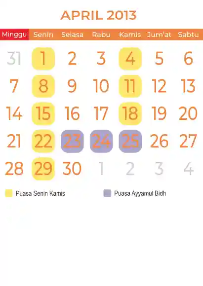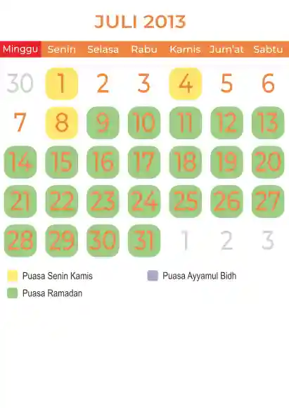 Template Kalender Puasa Vector
