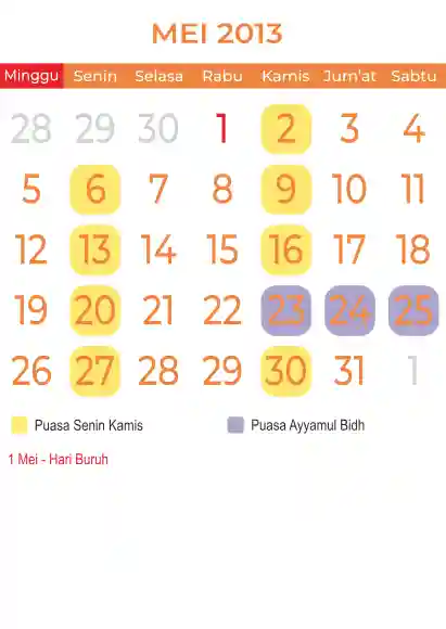 Template kalender puasa 2013, Versi yang lebih simple, cocok sekali buat anda yang ingin cetak kalender yang bermanfat buat umat.