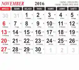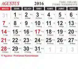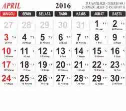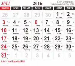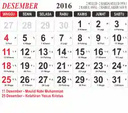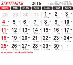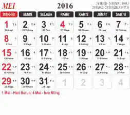 List hari libur tahun 2016 pada Tema 3 (Wide)