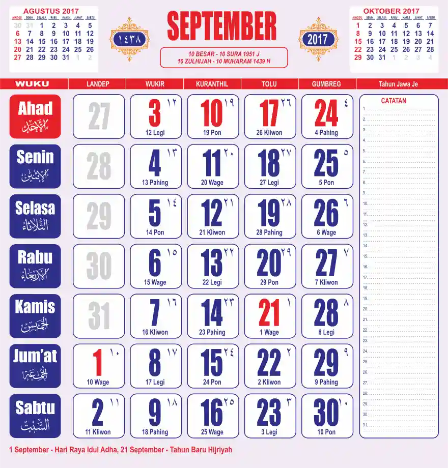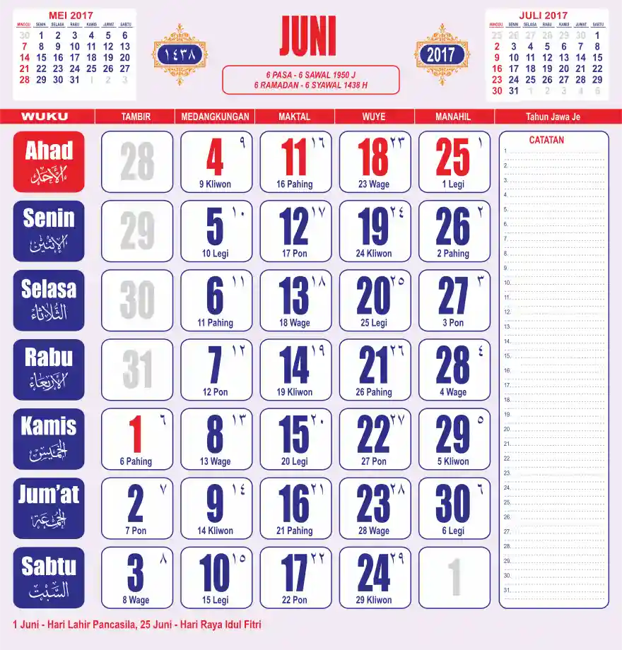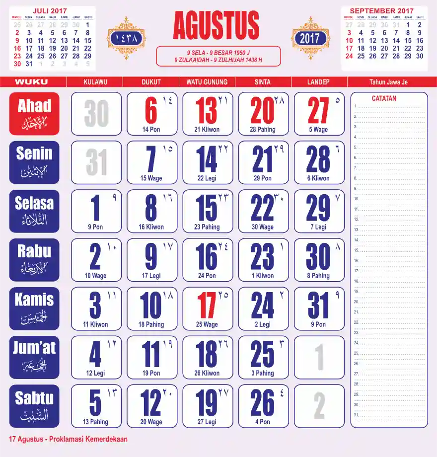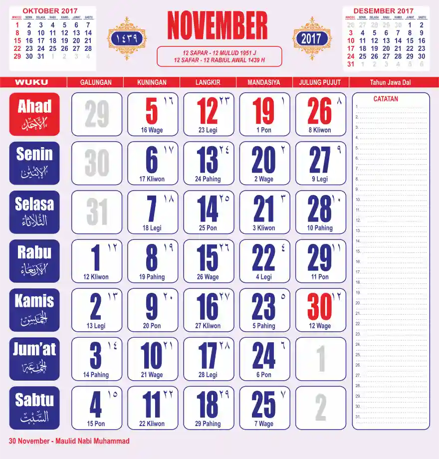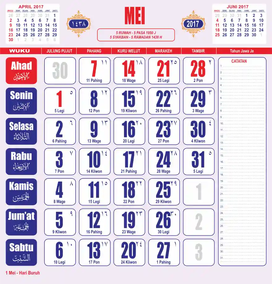 Template kalender 2017 lembaran besar jumbo yang sering dipakai oleh masyarakat jawa lengkap dengan wuku. Kalender ini biasanya di cetak 1 lembar per bulan.