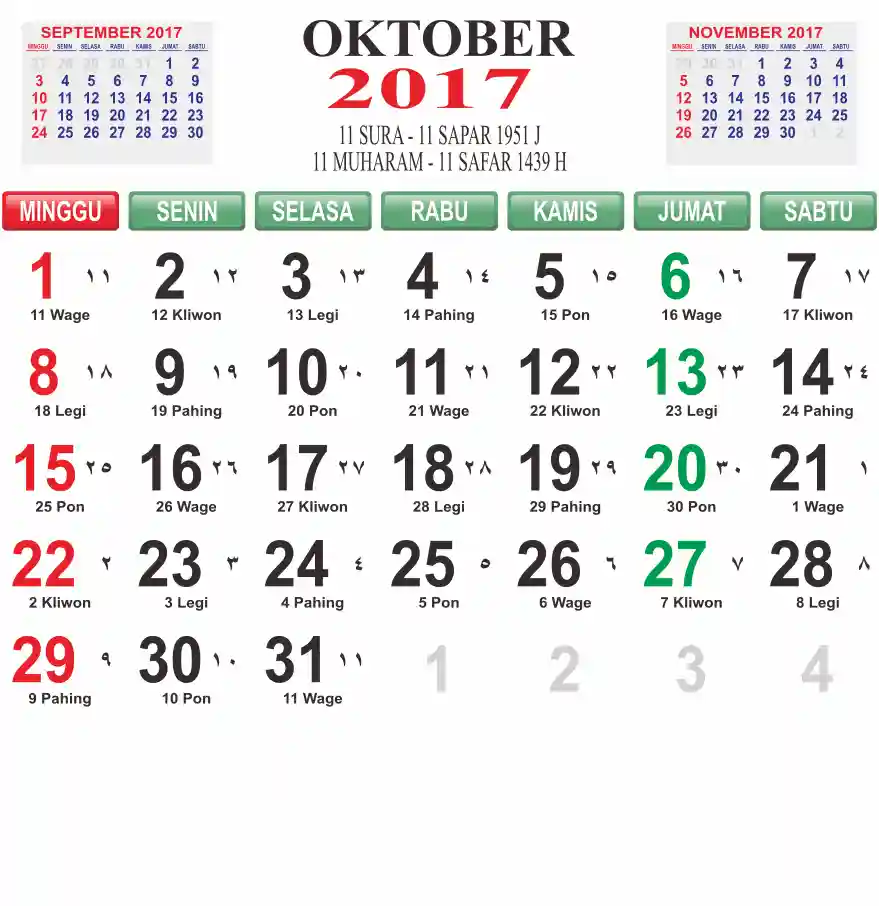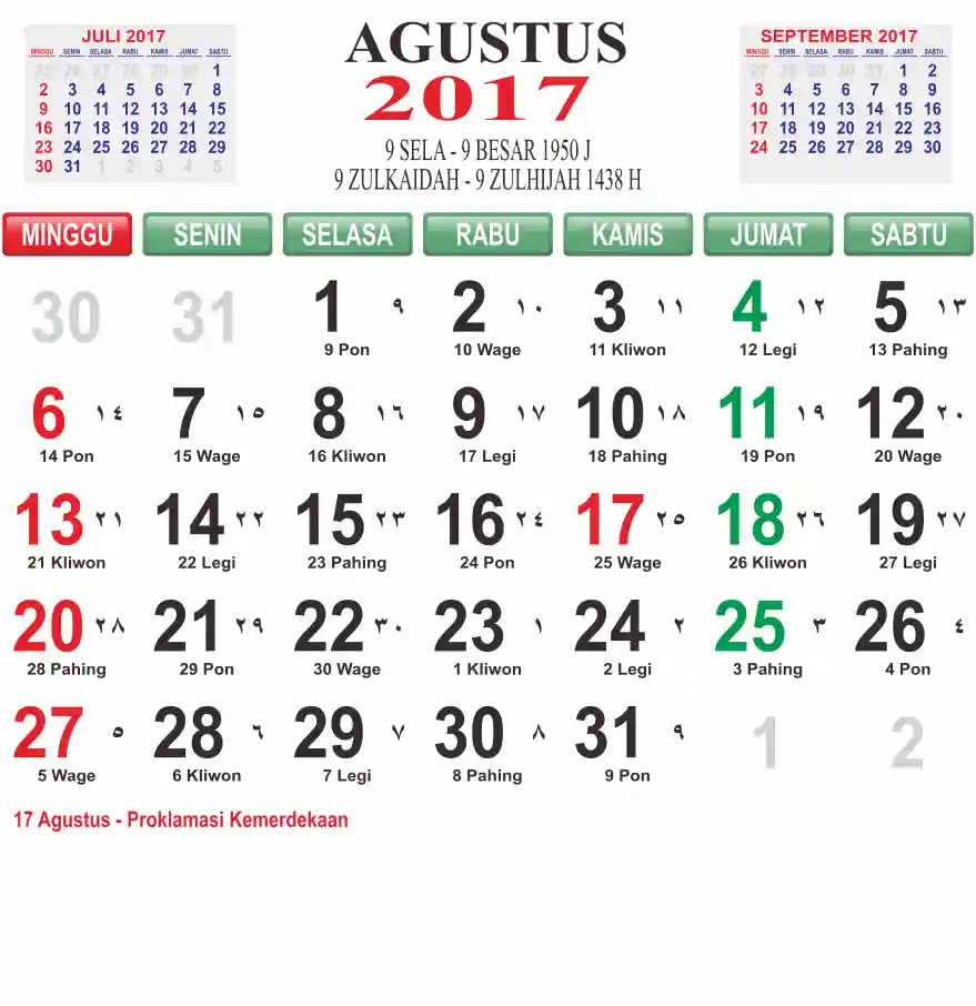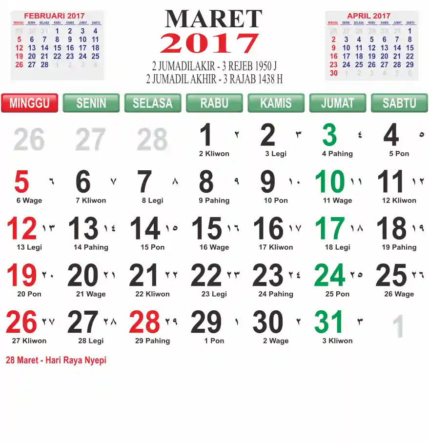 Template kalender 2017 lembaran besar jumbo yang mudah di baca dari jarak jauh. Kalender ini biasanya di cetak 1 lembar per bulan.