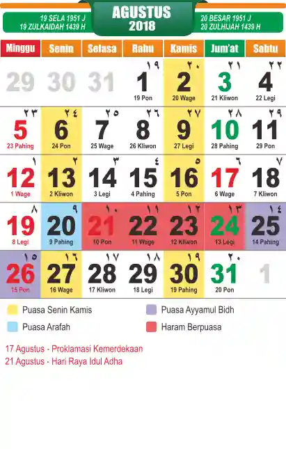 List hari libur tahun 2018 pada Tema 10