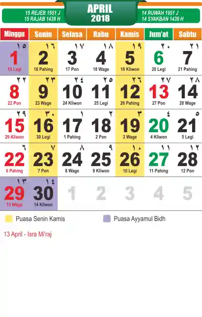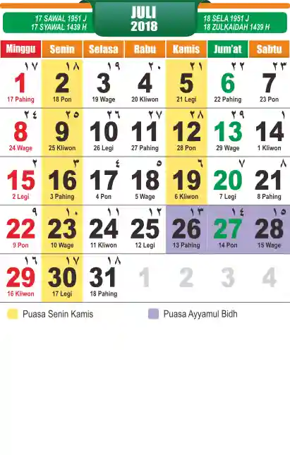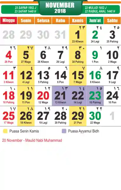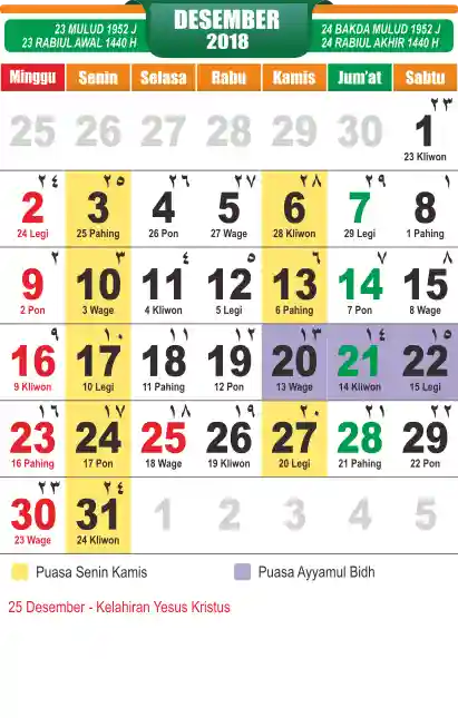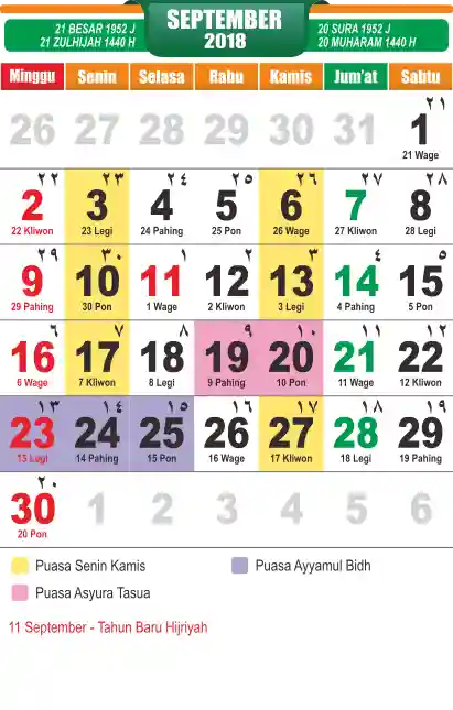 Template Kalender Jawa + Hijriah Vector