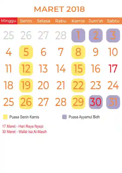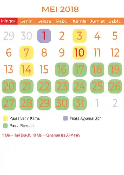 Template kalender puasa 2018, Versi yang lebih simple, cocok sekali buat anda yang ingin cetak kalender yang bermanfat buat umat.