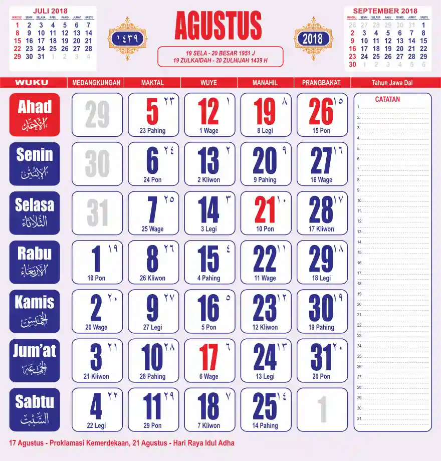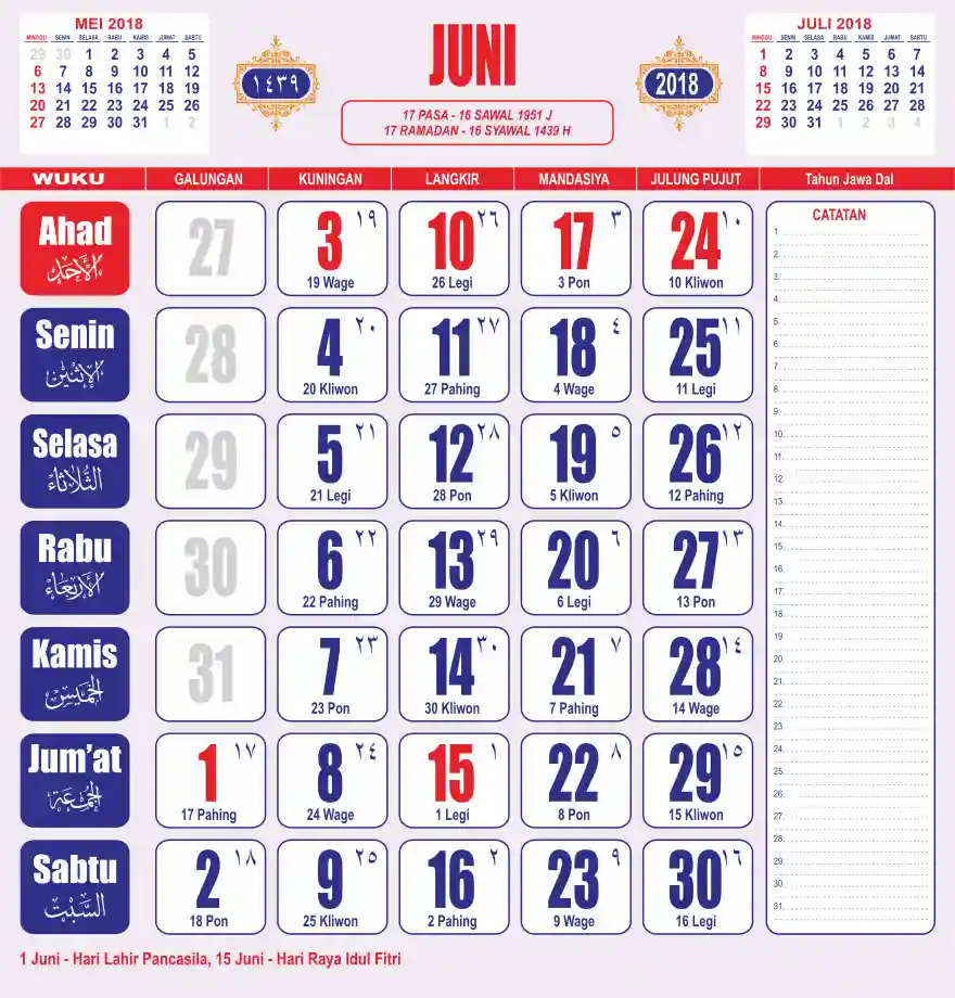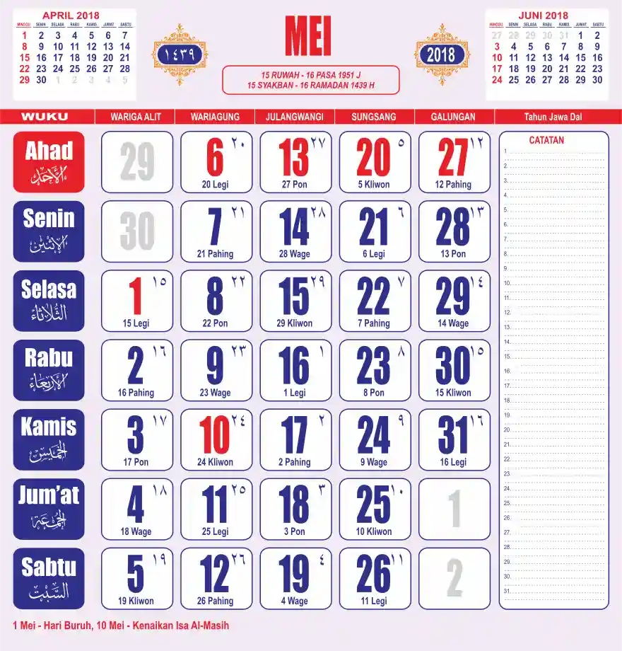Template kalender 2018 lembaran besar jumbo yang sering dipakai oleh masyarakat jawa lengkap dengan wuku. Kalender ini biasanya di cetak 1 lembar per bulan.